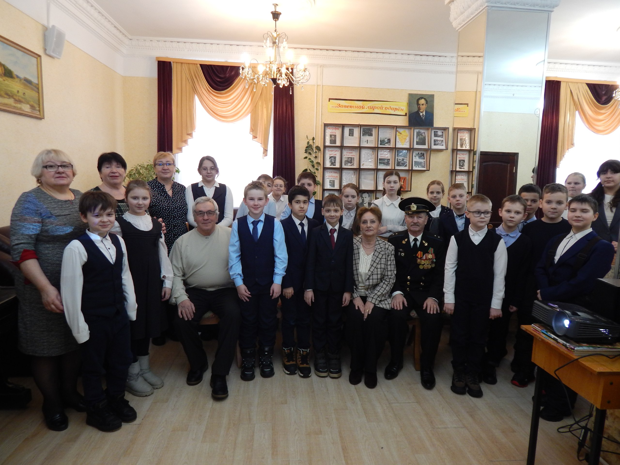 Участники литературного клуба «Источник» прочитали свои авторские произведения о Защитниках Отечества. Варя Мешкова - участница клуба «Юный краевед» также прочитала стихотворение о героях нашей страны. В заключении ребята исполнили песню «Служить России».