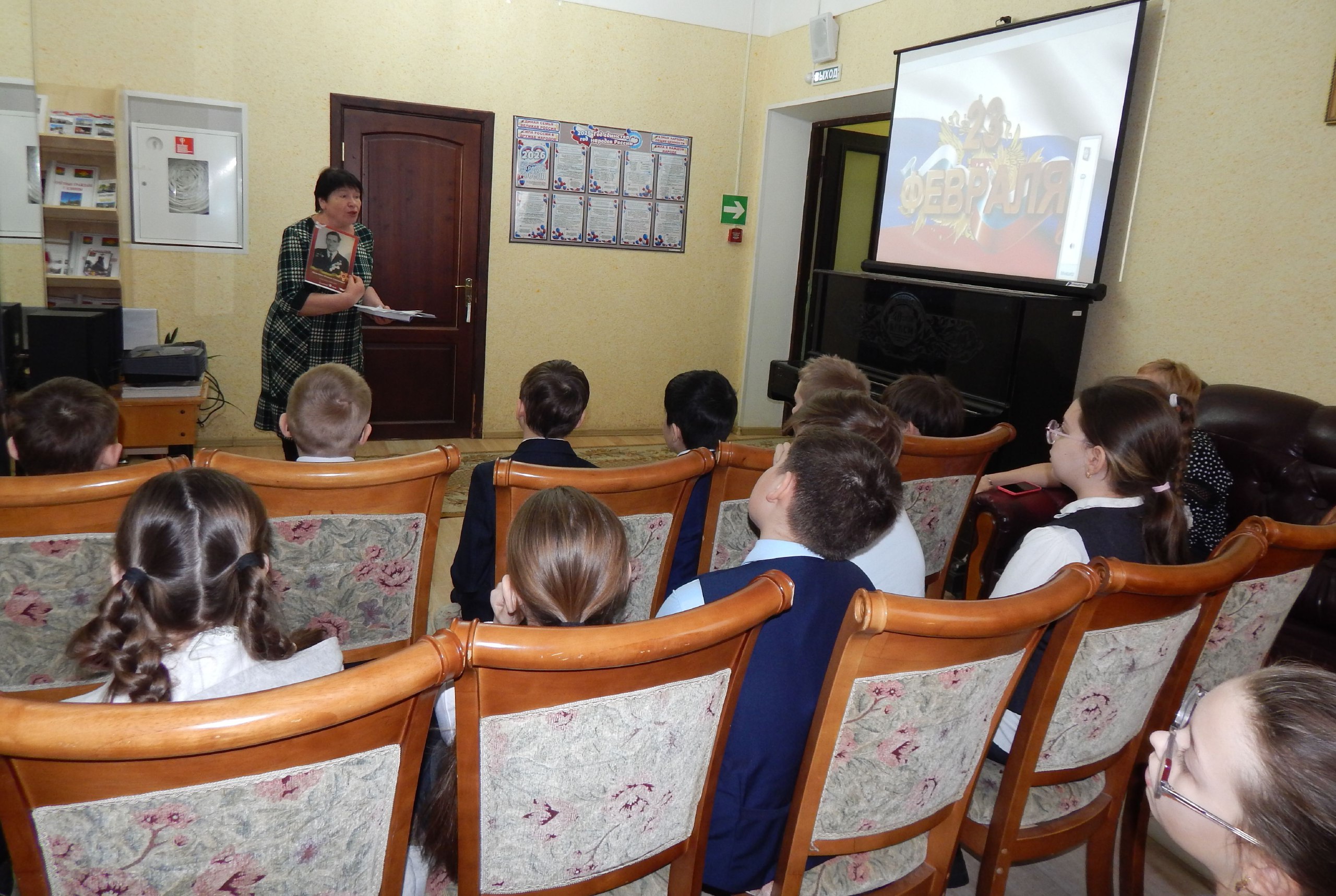 В преддверии памятной даты - Дня защитника Отечества 20 февраля краеведческая библиотека им. А.Ф. Землянского для участников клуба «Юный краевед» провела патриотический час «Мы защитники России».