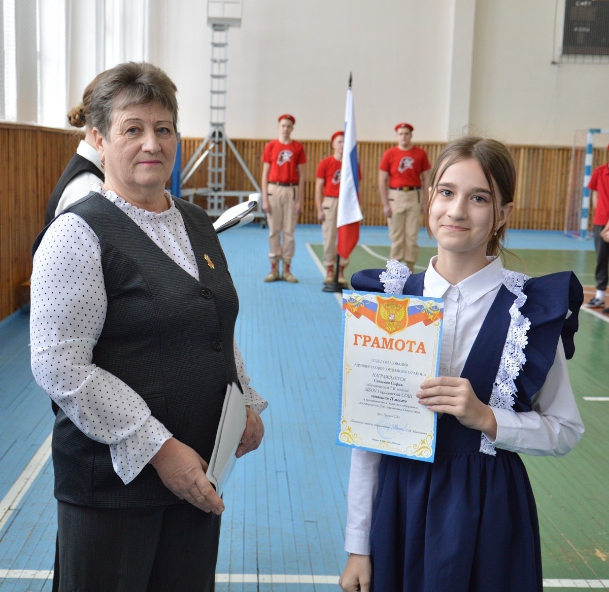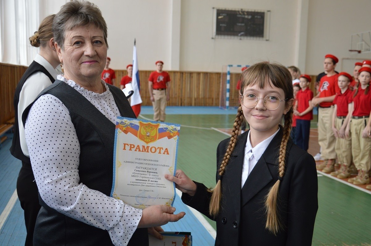 На торжестве подвели итоги и вручили награды. Валентина Карловская вручила грамоты победителям конкурса открыток, посвящённого Дню защитника Отечества. В спортивной эстафете победили команды Петровобудской, Гордеевской и Мирнинской школ. Грамоты вручила Галина Якубович, председатель местного Совета «Движения Первых».