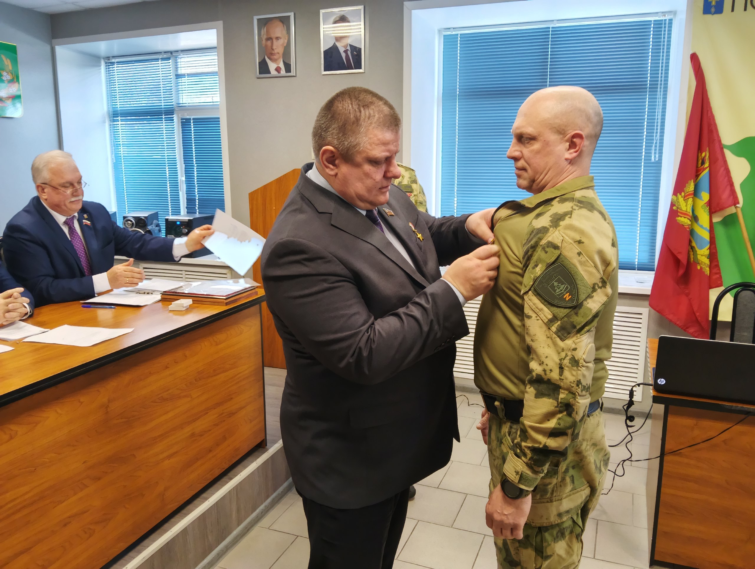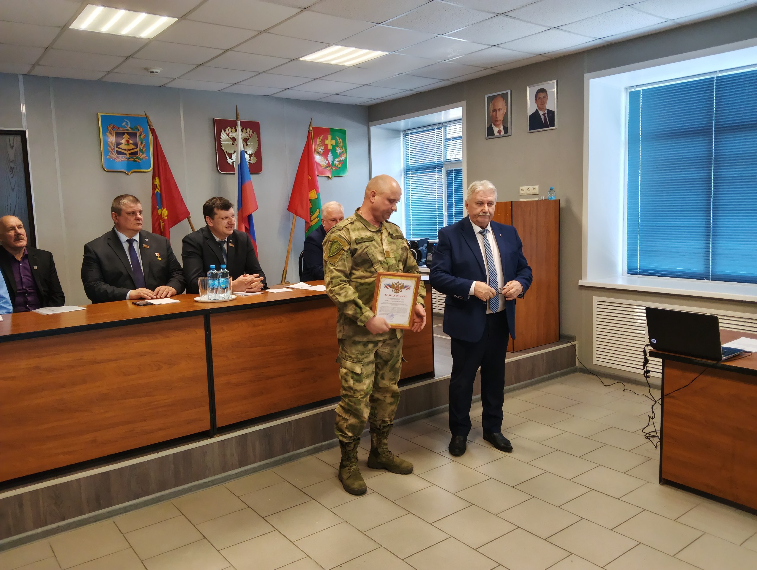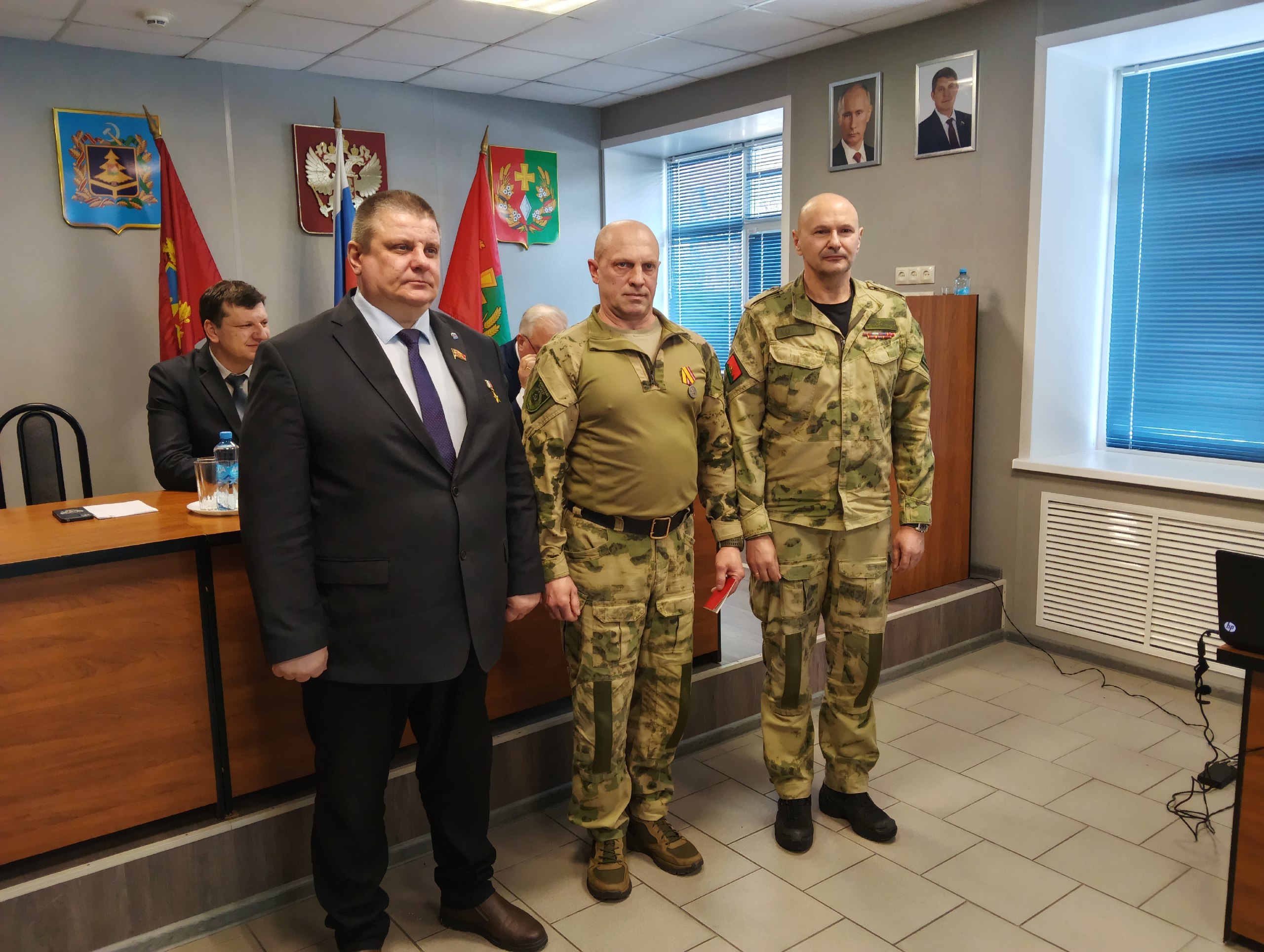 В начале сессии директор Специализированного государственного унитарного предприятия «Центр специального назначения «Защита» Брянской области» Редько В.Г. вручил заслуженные награды сотрудникам Отряда военизированной охраны за отвагу и самоотверженность, проявленные при выполнении задач в боевых условиях, сопряжённых с риском для жизни. Далее, глава администрации Погарского района Цыганок С.И. также наградил Благодарностями администрации Погарского района «За добросовестное несение службы и образцовое выполнение возложенных задач» отличившихся работников «Центра специального назначения «Защита» Брянской области».