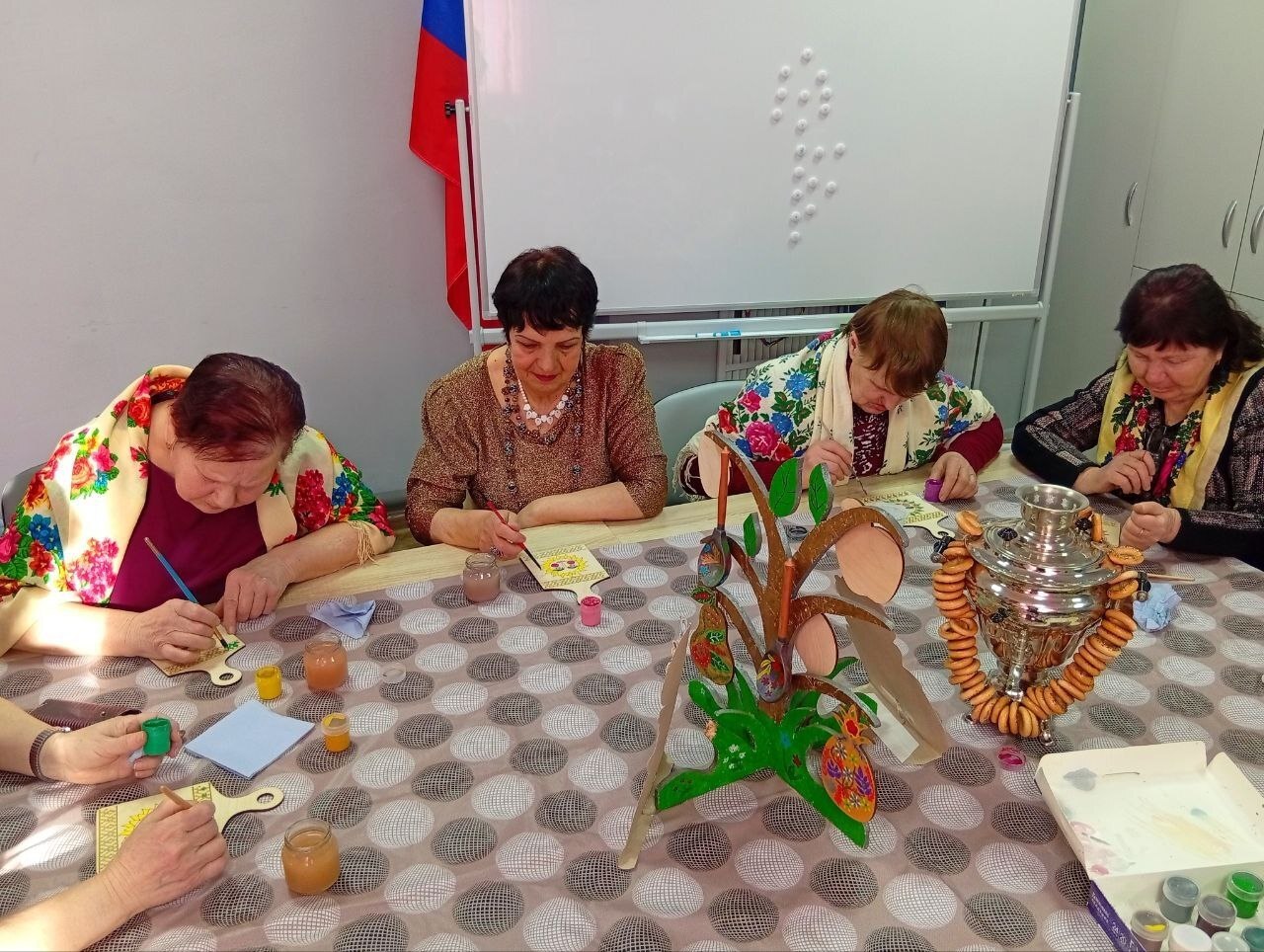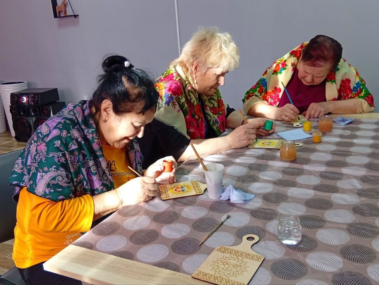 Каждый участник с увлечением погрузился в процесс. Атмосфера в зале была поистине волшебной. Смех, оживлённые беседы, мазки кистей, касающихся дерева – всё сливалось в единую симфонию радости. Участники не только творили, но и общались, обменивались воспоминаниями, делились историями из своей жизни. В такие моменты особенно остро ощущается, как важна поддержка и тепло человеческого общения, как ценны моменты, проведённые вместе, в кругу единомышленников. Роспись стала не просто процессом, а своеобразным ритуалом, объединяющим людей, пробуждающим в них лучшие чувства. У каждой женщины теперь была не просто расписная доска, а настоящее произведение искусства, хранящее тепло их рук и доброту их сердец.