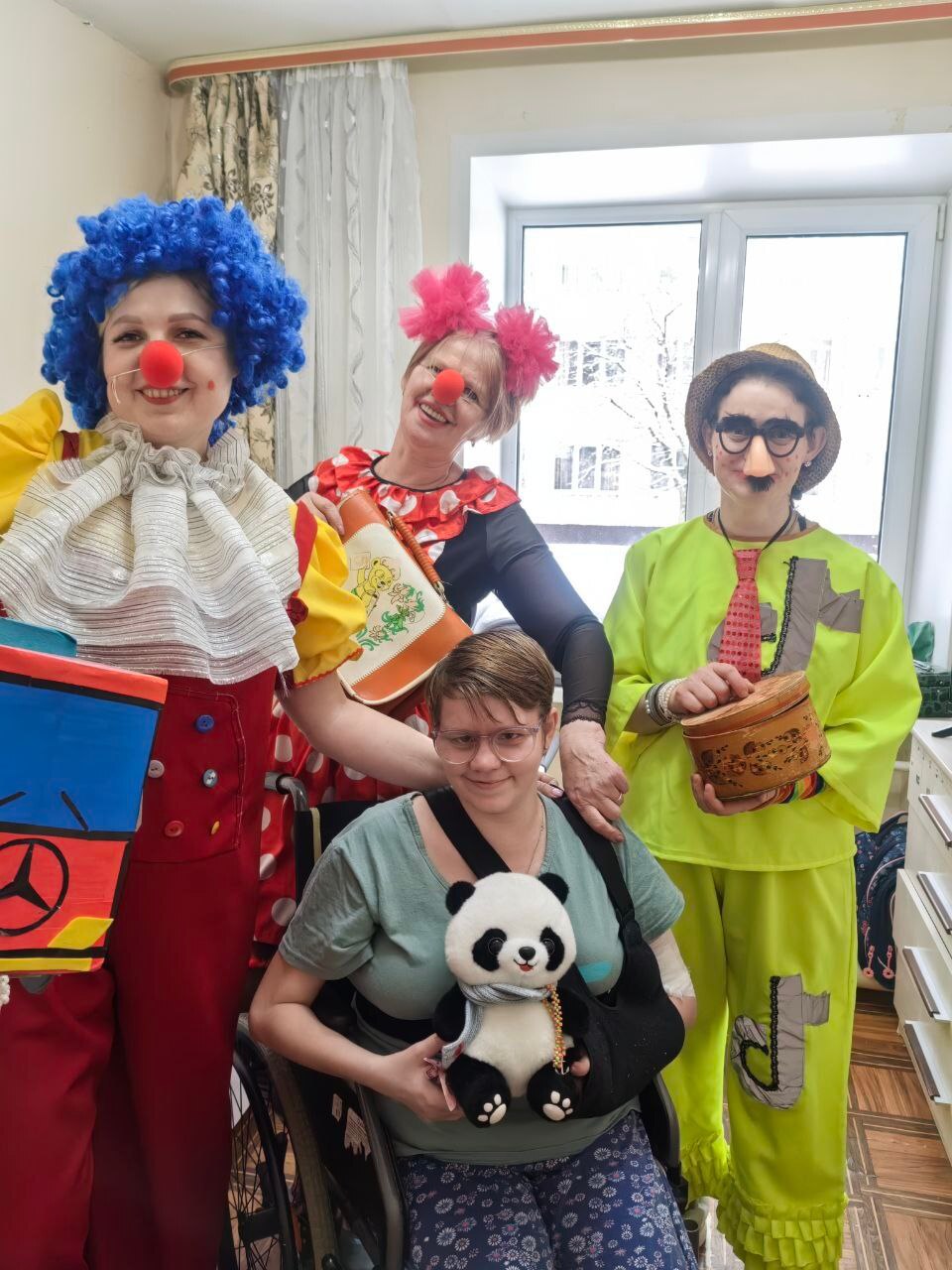 Клоуны создали праздничную атмосферу, раздавая лотерейные билеты, а получатели социальных услуг с удовольствием принимали небольшие, но приятные призы. Мероприятие прошло весело и подарило окружающим массу положительных эмоций!