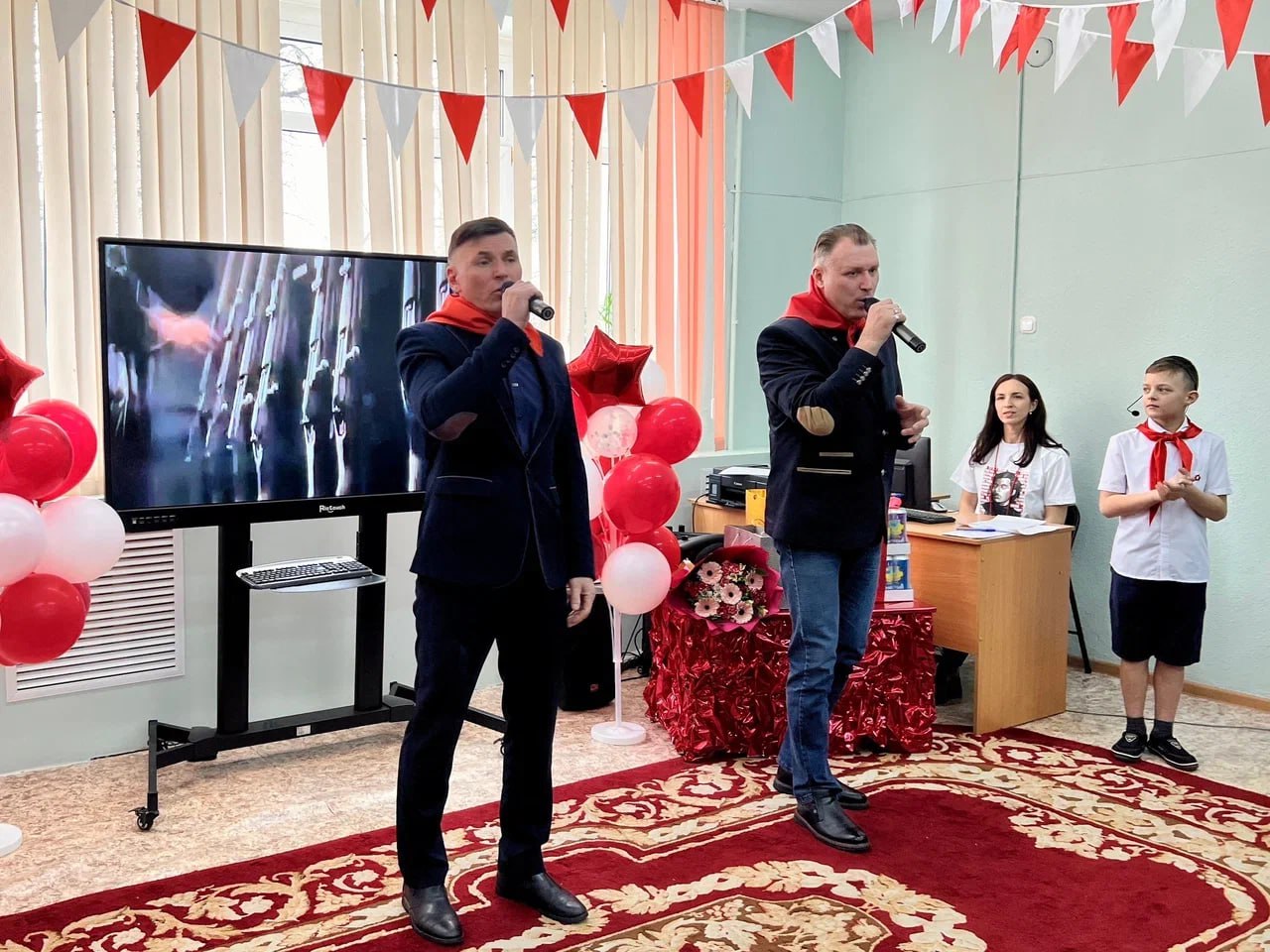 Поздравили учреждение и верные друзья – юные книголюбы, которые подготовили замечательные подарки. Например, воспитанники детского сада № 146 «Белоснежка» выступили с номером «Русские наигрыши», постоянная читательница Соломея Мчедлидзе сыграла этюд для фортепиано, а солистки фольклорного ансамбля ЦВР г. Брянска «Красны девицы» под руководством Татьяны Дубинкиной исполнили песни о Родине. Закончилось праздничное мероприятие выступлением победителей Всероссийских музыкальных фестивалей МВД России «Щит и лира», «Милосердие белых ночей», вокального дуэта «Товарищ и майор» (Валентин Фирсова и Сергей Непша). В их исполнении прозвучала песня «Ни шагу назад!»
