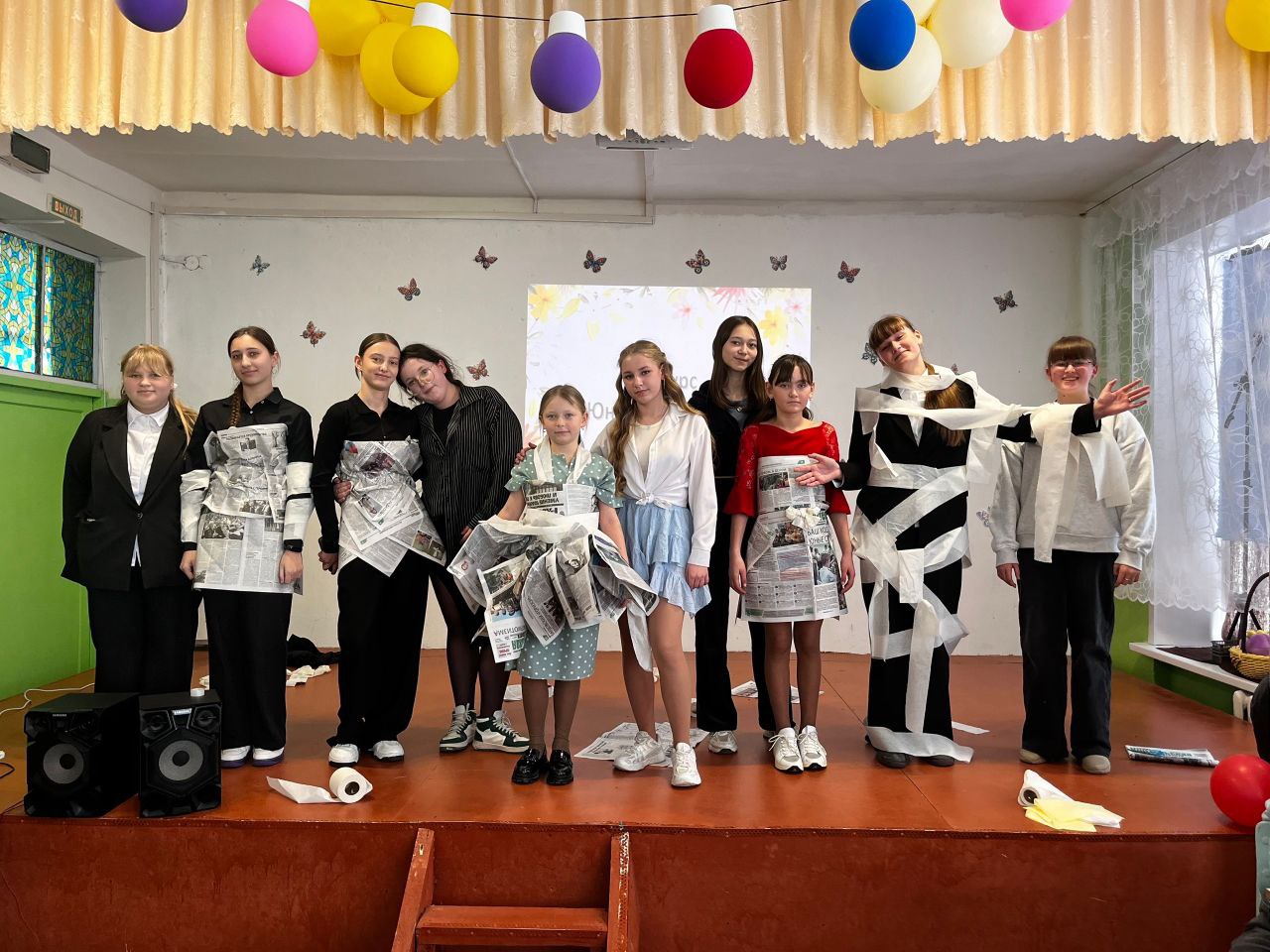 «Юный дизайнер» — пик креативности! Всего за несколько минут из газет, туалетной бумаги, скотча и степлера были созданы настоящие шедевры высокой моды.