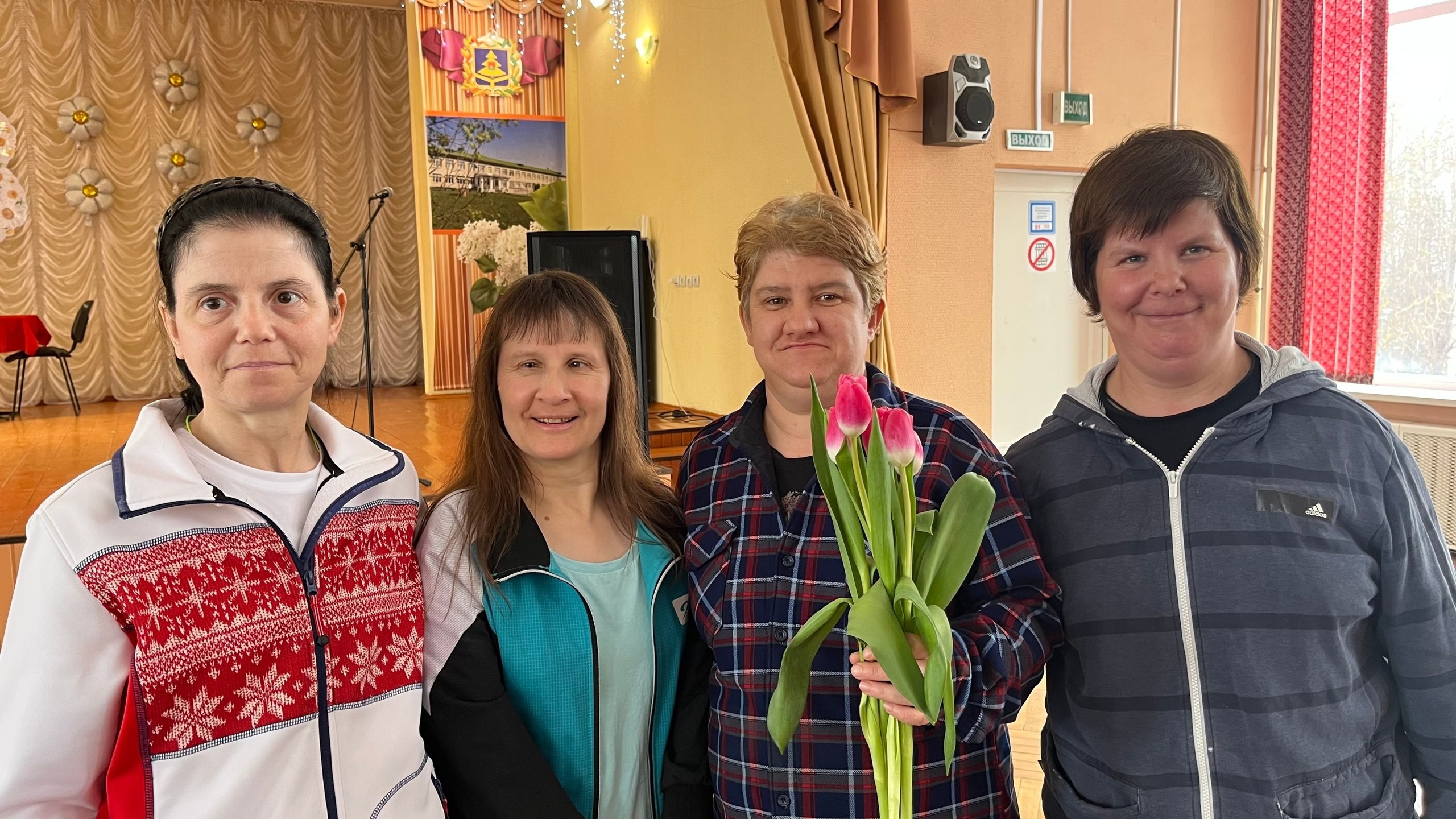 Затем коллектив «Калинушка» исполнил традиционные брянские народные песни, подарив зрителям атмосферу тепла и народного колорита родного края. Завершился концерт вручением ароматных тюльпанов прекрасной половине нашего дома социального обслуживания.
