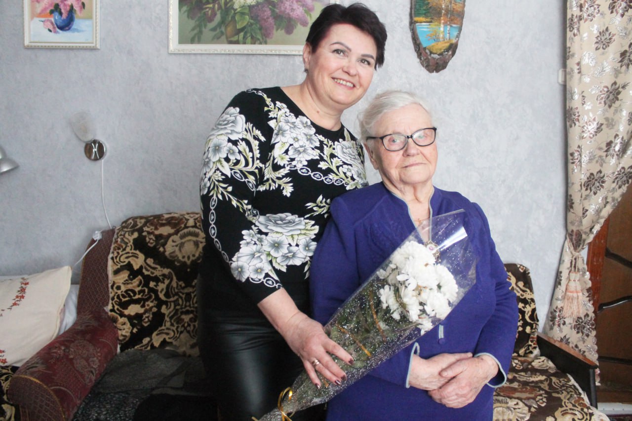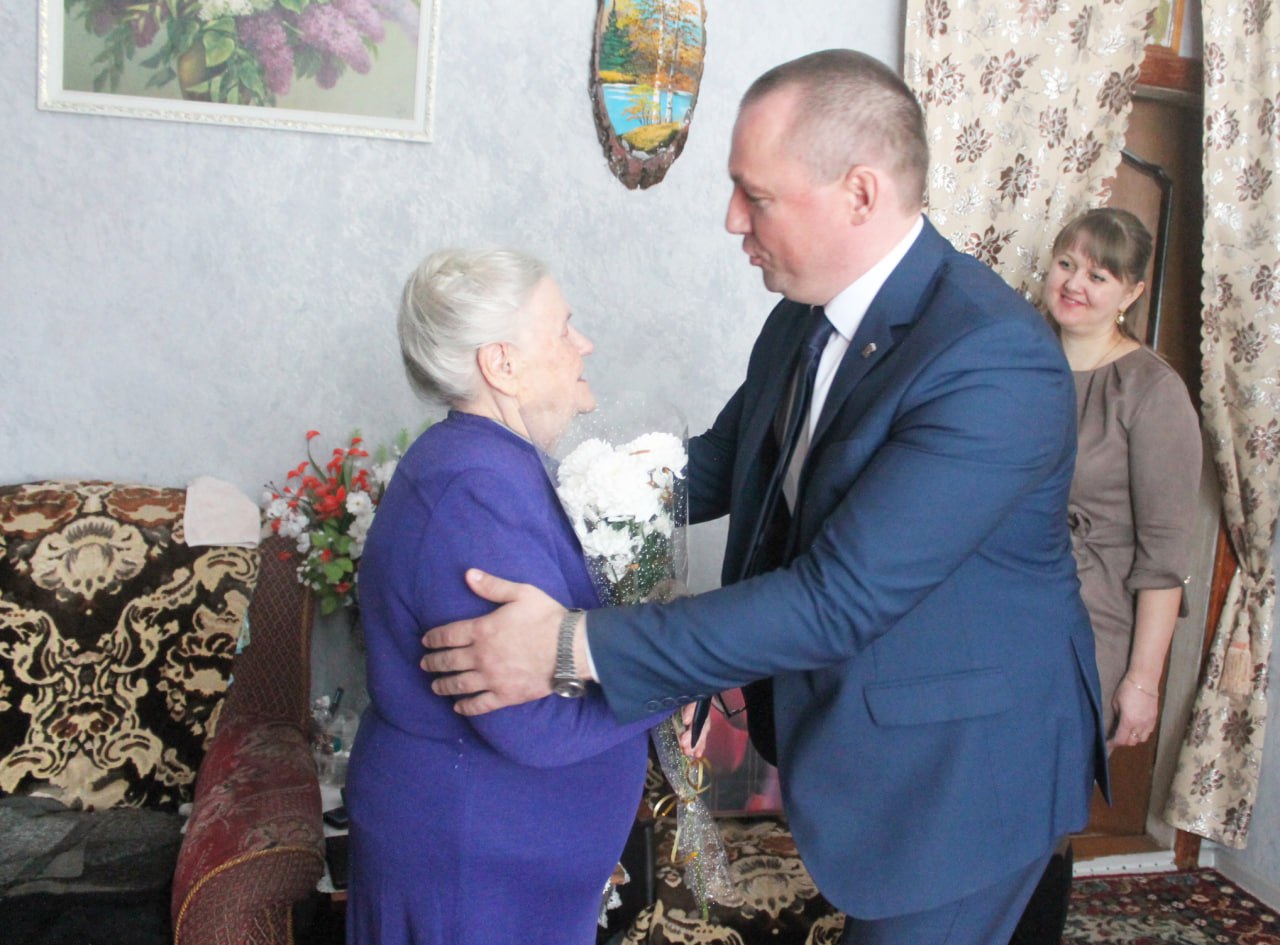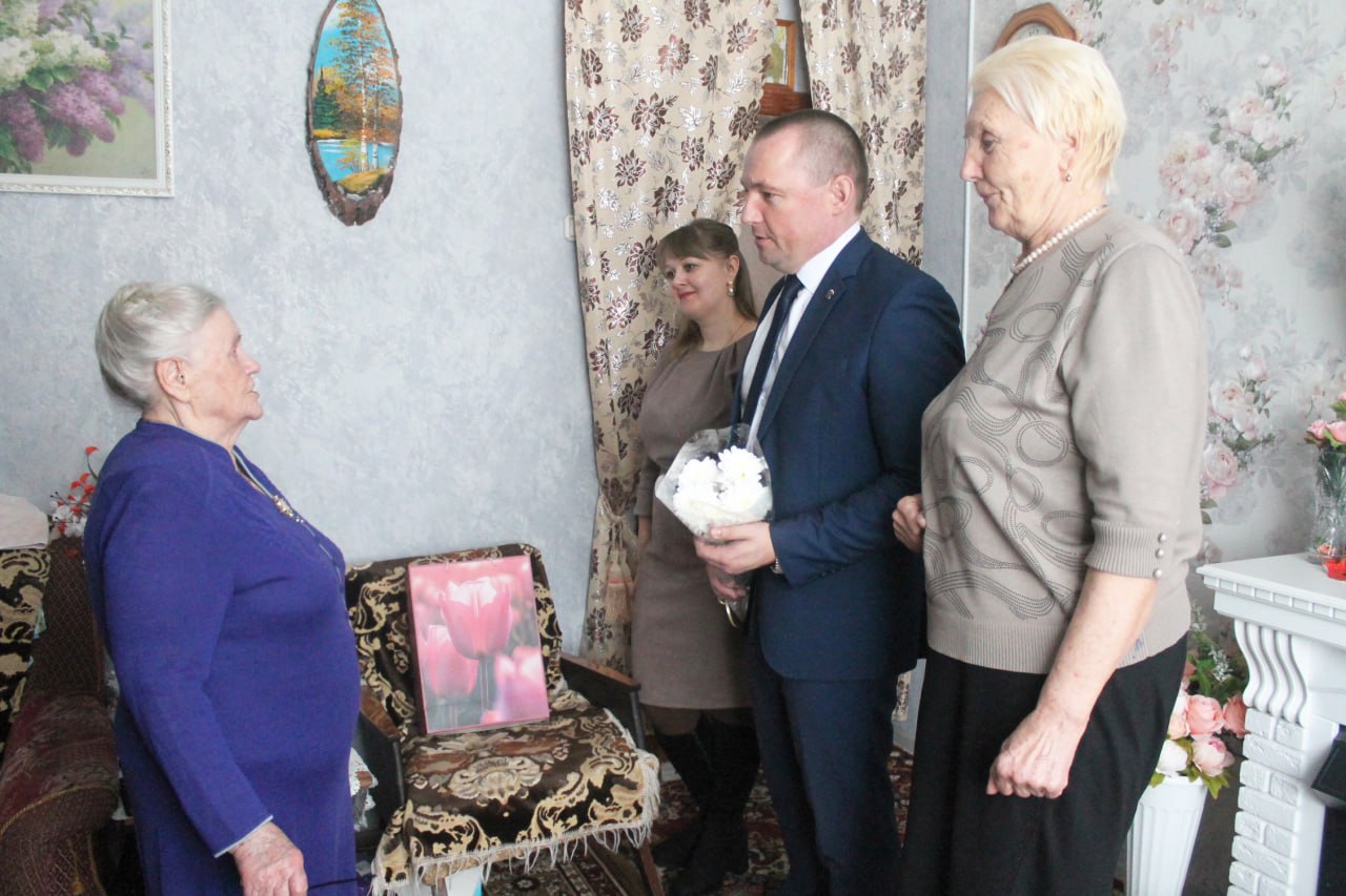 Глава района Алексей Девятченков, председатель Совета ветеранов Раиса Гарбузова и специалист сельсовета Татьяна Лемкина навестили именинницу. Поздравили с юбилеем и 8 Марта, пожелали здоровья и любви близких.