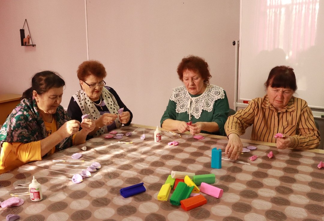 В стенах комплексного центра Навлинского района для участников клуба «Активное долголетие» прошел по-настоящему очаровательный мастер-класс. Что может быть приятнее, чем своими руками создать нечто прекрасное?! Наши милые дамы с энтузиазмом принялись за дело, превращая обычные цветы в уникальные букеты. Каждое соцветие, каждая веточка были подобраны с любовью и фантазией.