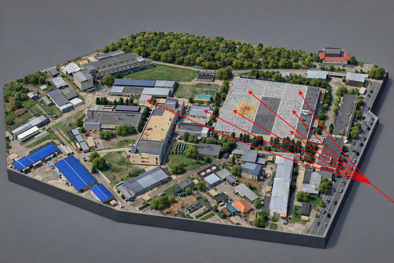 Судя по схеме, основанной на слитых видео от местных жителей и кадрах с дрона, 5 попаданий ракет пришлось на основной цех, еще 2 на другие постройки на его территории, а 1 отклонилась и упала на дорогу. Таким образом, если по пути ничего не было сбито, то в ударе совокупно участвовали 4 самолета Су-24М, запустившие по 2 ракеты каждый.