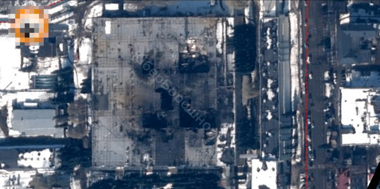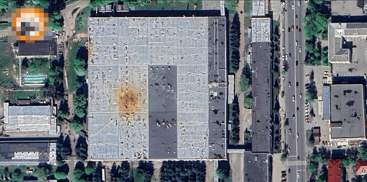 Как и на опубликованном противником видео с украинского дрона, видны 5 попаданий в крышу цеха и значительные проломы. Учитывая, что ракеты Strom Shadow (SCALP-EG) несут проникающую боевую часть типа BROACH, то основные разрушения могут быть внутри.