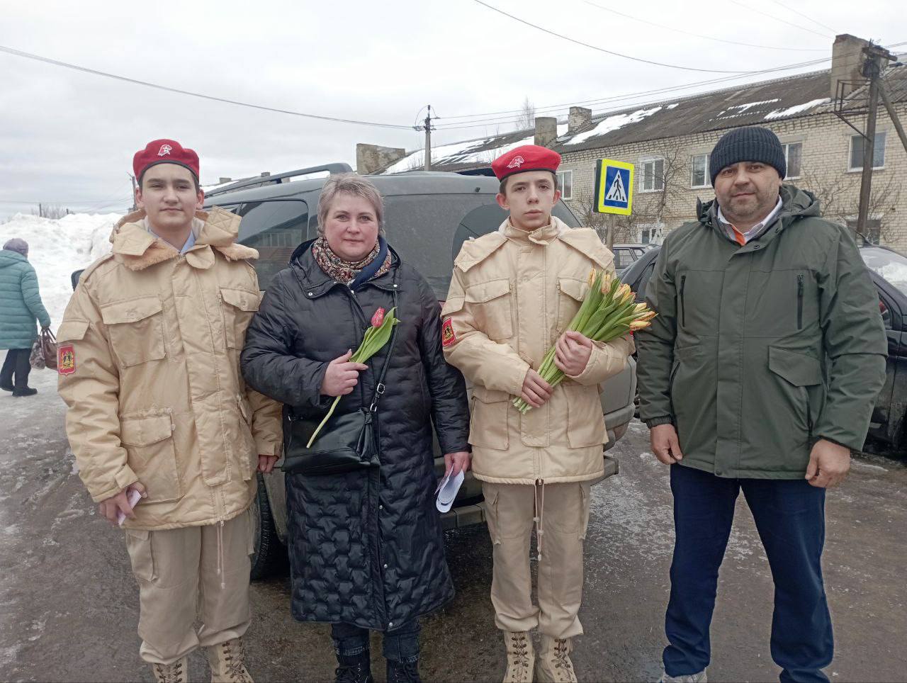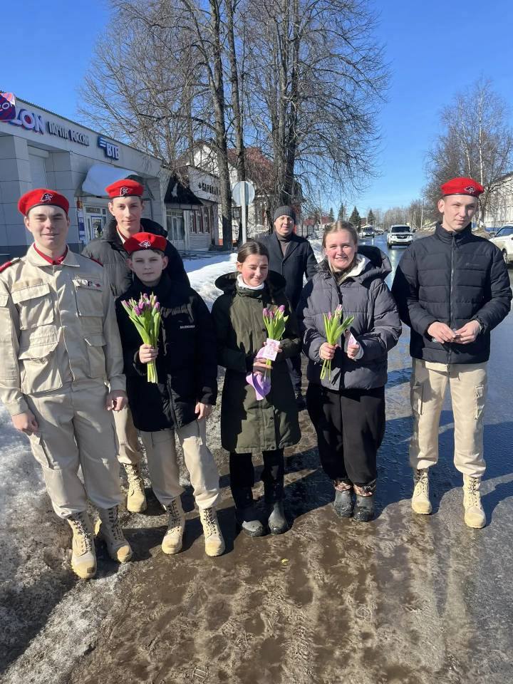 В канун замечательного праздника они решили сделать приятные сюрпризы для женщин. Ребята прошлись по центральным улицам, даря открытки, цветы и отличное настроение прохожим девушкам, женщинам и бабушкам.