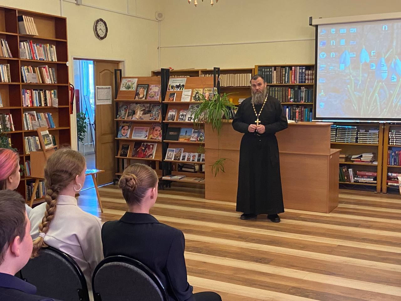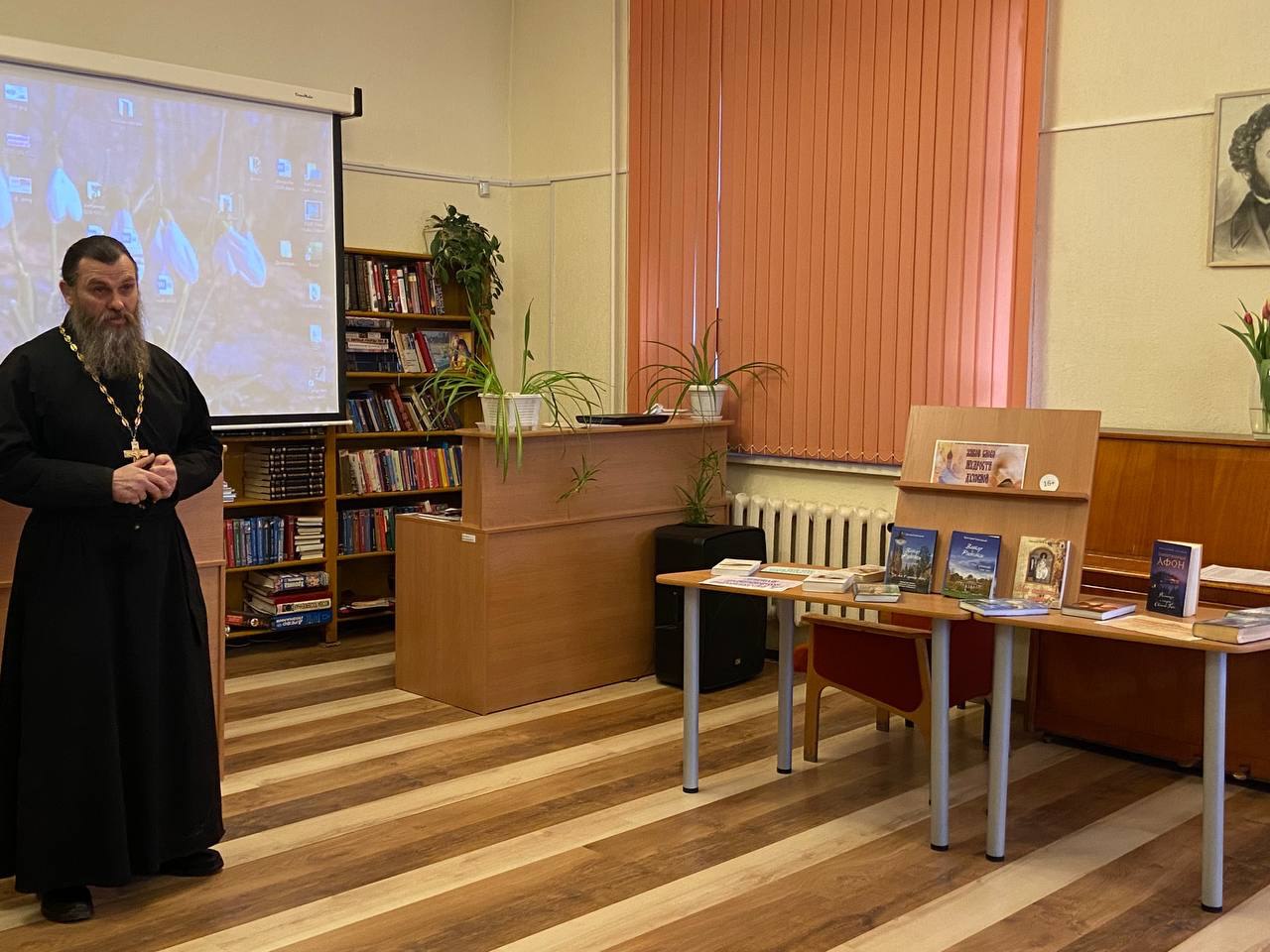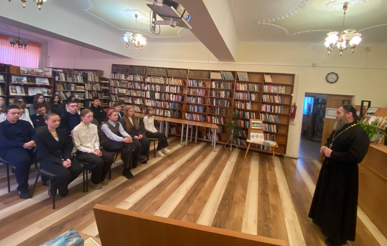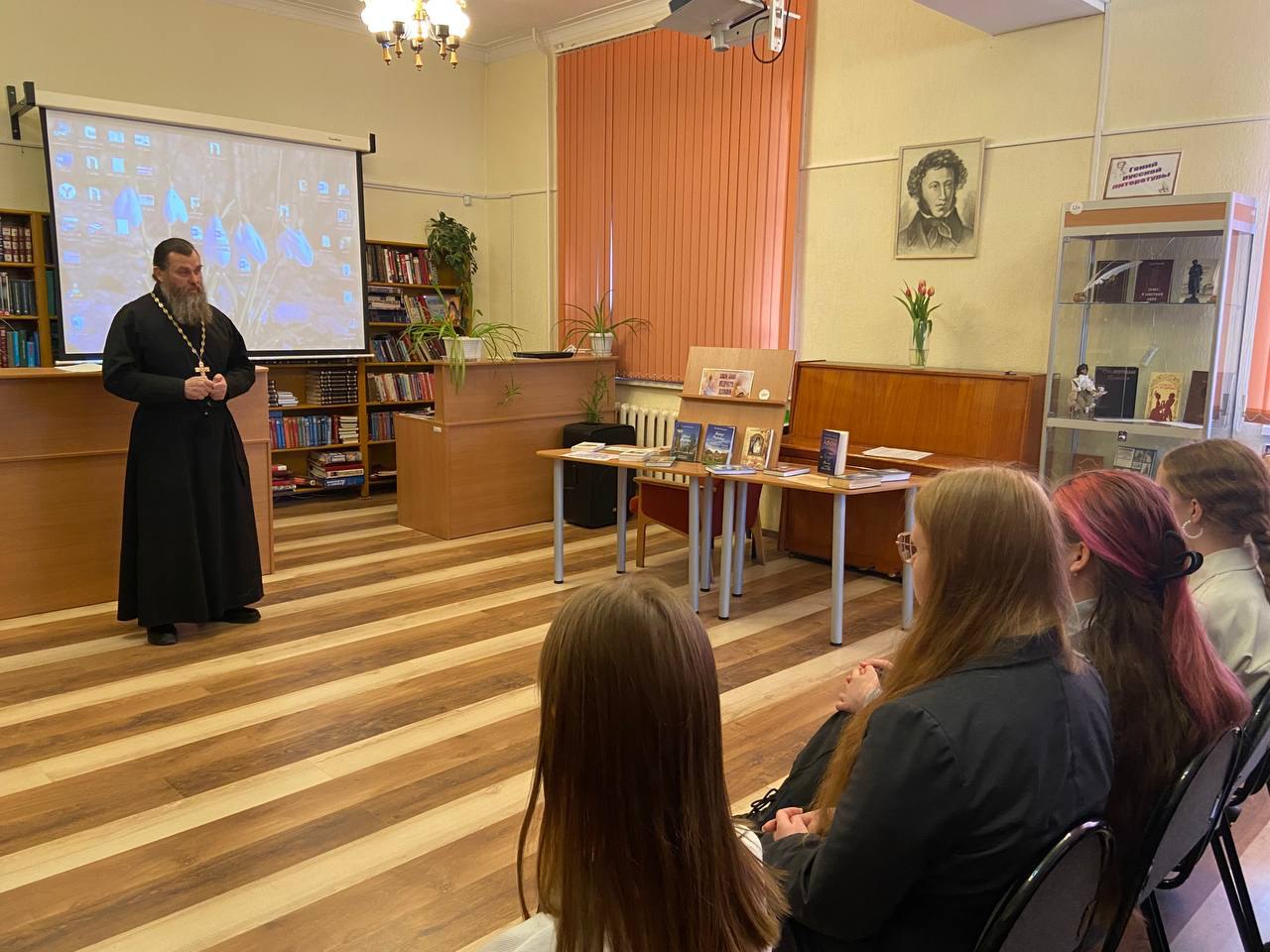 В библиотеке им А. С. Пушкина ко Дню православной книги для учащихся школы №2 им. А.И. Герцена прошёл час духовности «Письма славянского узорчатая нить», посвящённый Дню православной книги