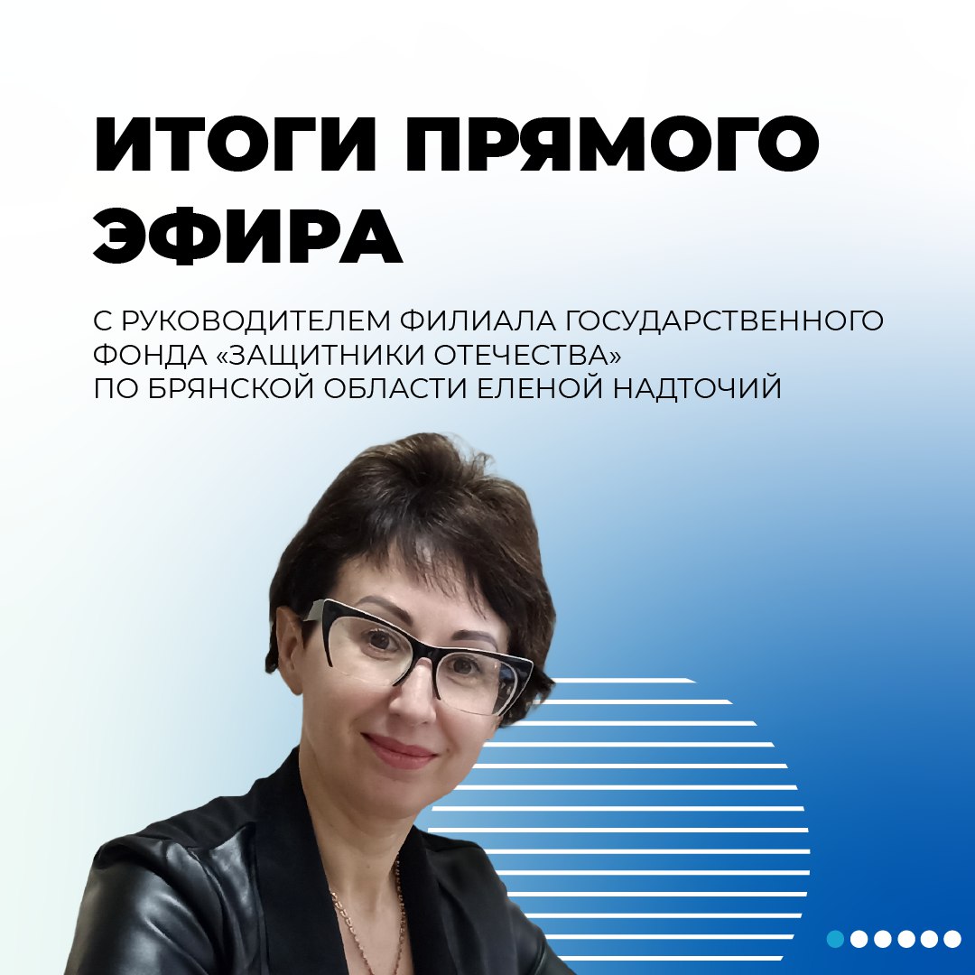 При поддержке ЦУР Брянской области состоялся прямой эфир с руководителем филиала Государственного фонда «Защитники Отечества» по Брянской области Еленой Надточий.
