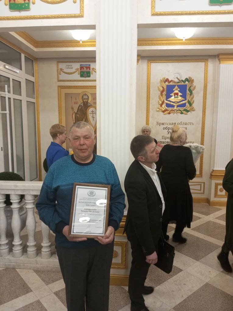 На мероприятии в торжественной обстановке депутат государственной Думы Матыцин Олег Васильевич вручил Благодарственное письмо главному инженеру МУПа ЖКХ нашего района Лапинскому Геннадию Михайловичу. Геннадий Михайлович более 40 отработал в сфере ЖКХ. Приходилось работать в экстремальных, сложных погодных условиях по ремонту водопроводов в населенных пунктах района. Делал всё, чтобы жители района были обеспечены водой.