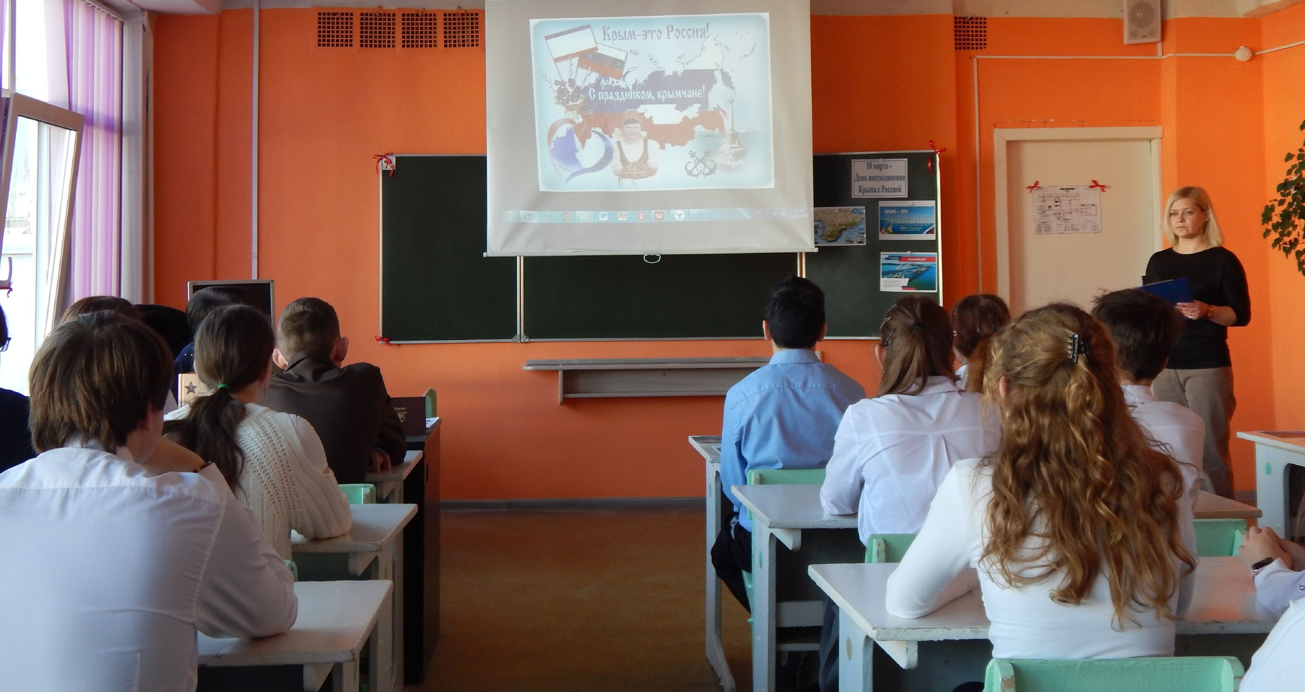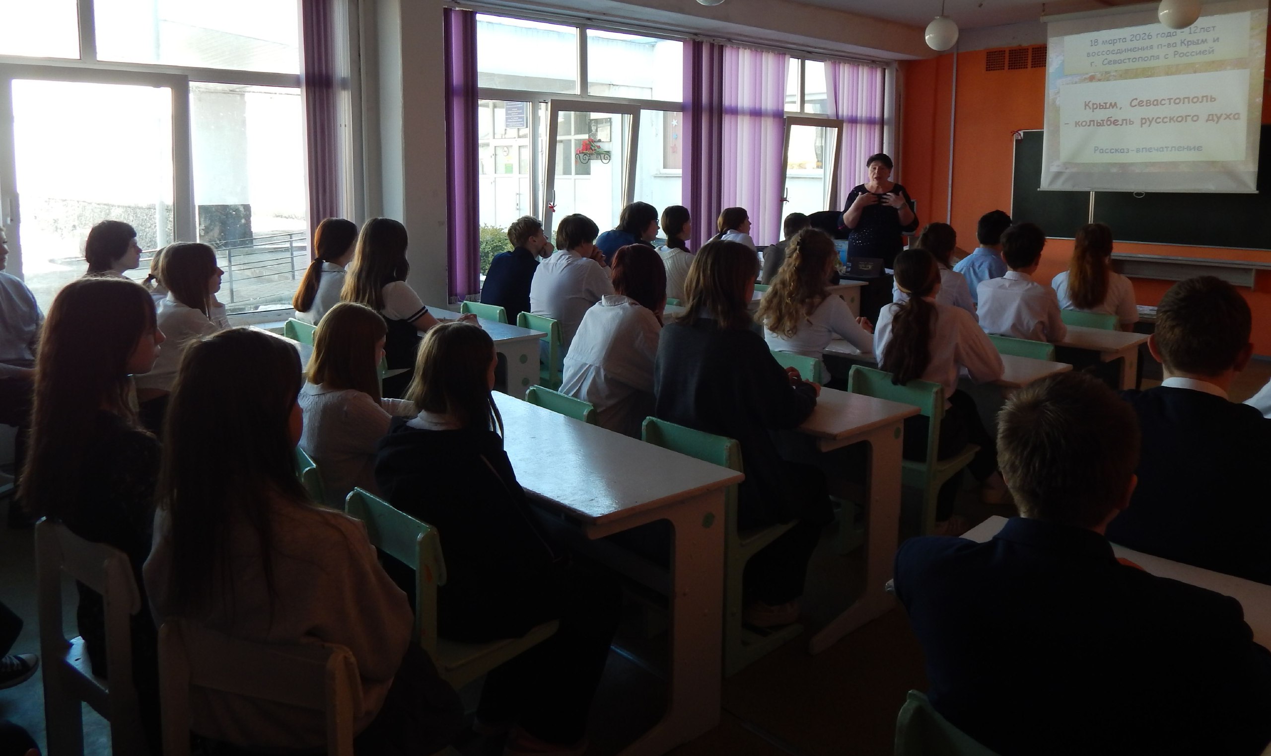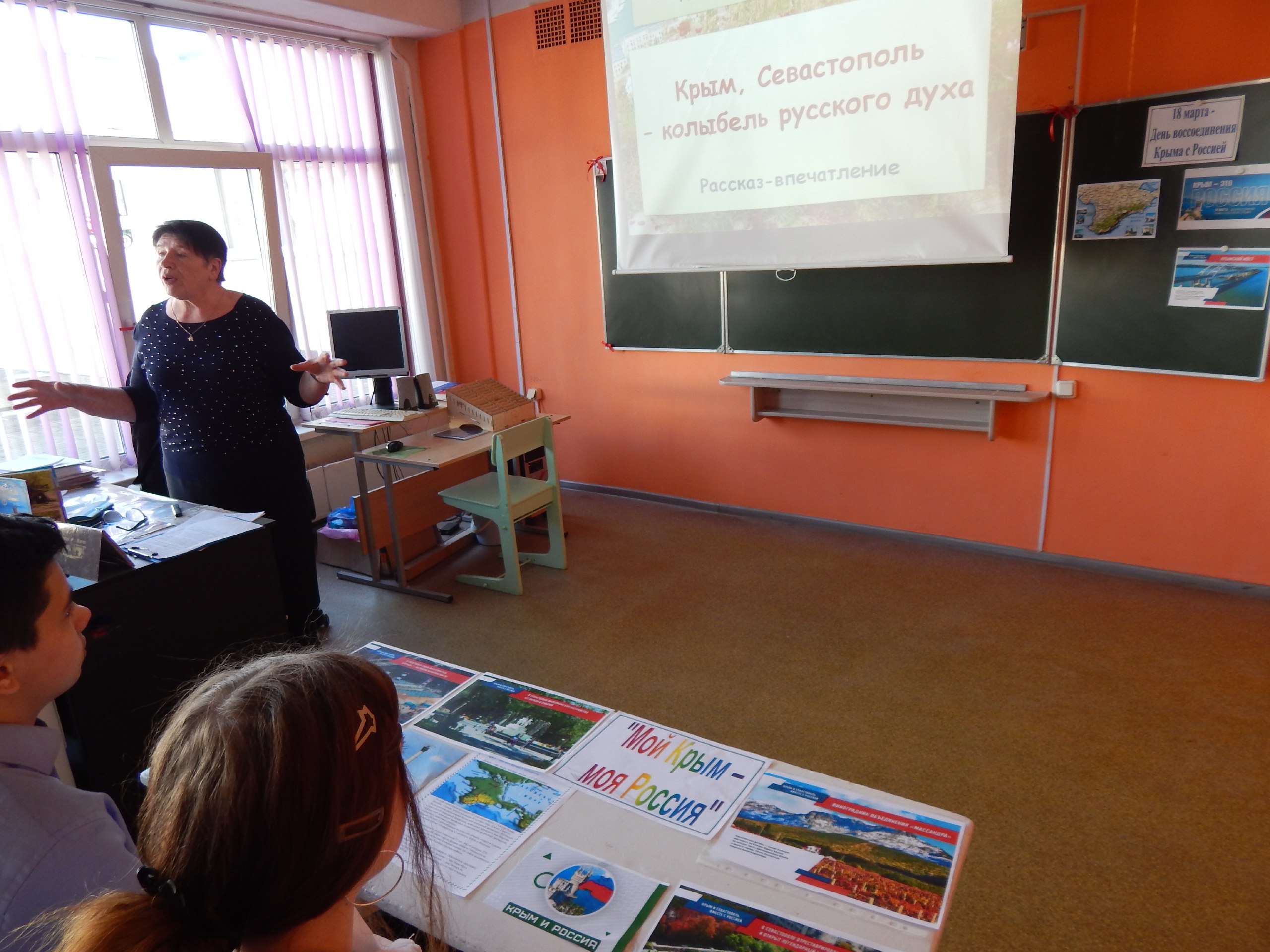 В преддверии этой даты ведущий библиотекарь краеведческой библиотеки им. А.Ф. Землянского Л. В. Придорожная и участница литературного объединения «Источник» Е.В. Бондаренко для учащихся 7 и 8-х классов СОШ № 7 им. А. С. Семенка провели информационный час «Крым в истории России».