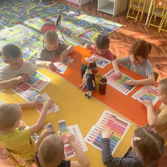 Дети поняли, что карандашами можно не только рисовать, но и играть с ними в интересные игры "Собери радугу", "Найди свой цвет". А в завершении дня ребята с удовольствием уселись за любимые раскраски.