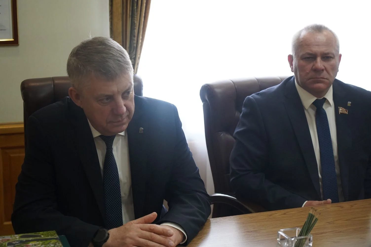 На рабочей встрече с генеральным директором ОАО «Городейский сахарный комбинат» Геннадием Михайловичем Соловьем и генеральным директором ОАО «Слуцкий сахарорафинадный комбинат» Виталием Владимировичем Марковцом обсудили перспективы сотрудничества между предприятиями Брянской области и Республики Беларусь.