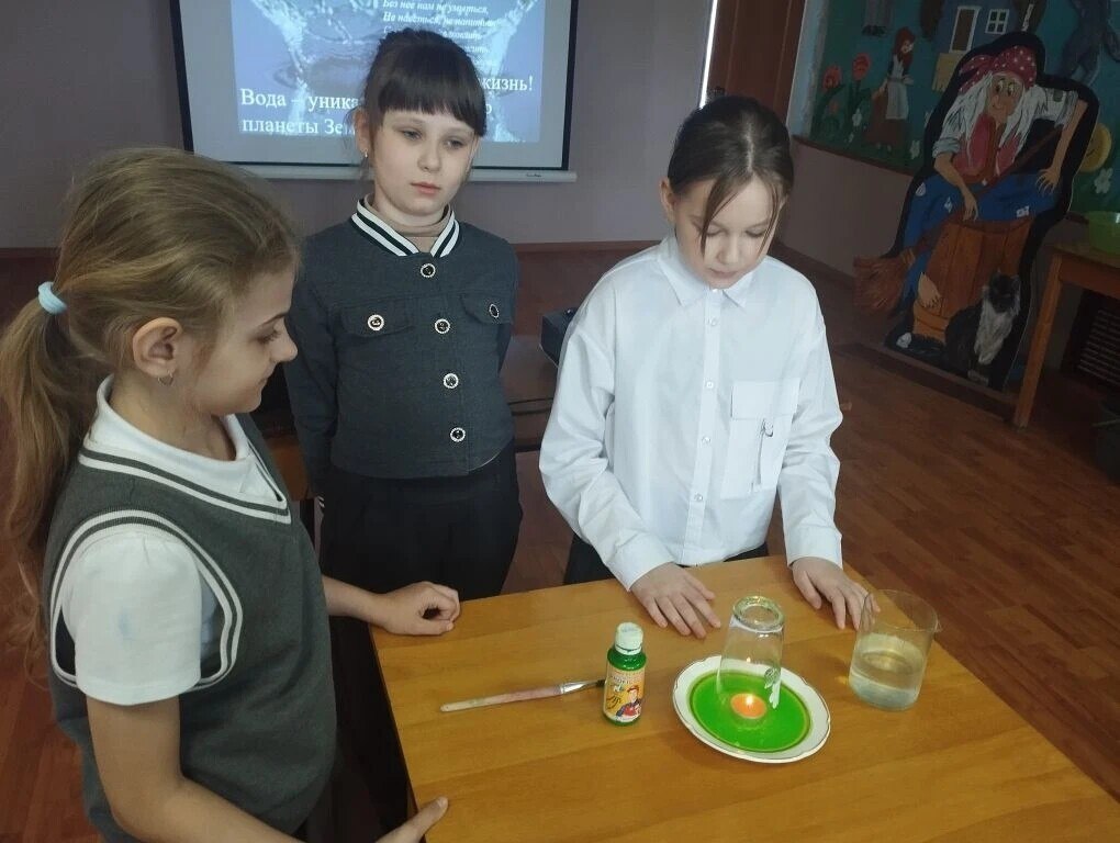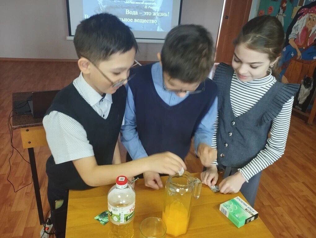 Вниманию ребят была представлена слайд — презентация, которая поведала о важной роли в жизни человека этого необходимого вида ресурсов. Девчонки и мальчишки вспоминали, какой может быть вода, для чего она нужна, что связано с ней в природе. Для детей библиотекарь подготовила несколько занимательных опытов, в которых юные исследователи приняли участие.