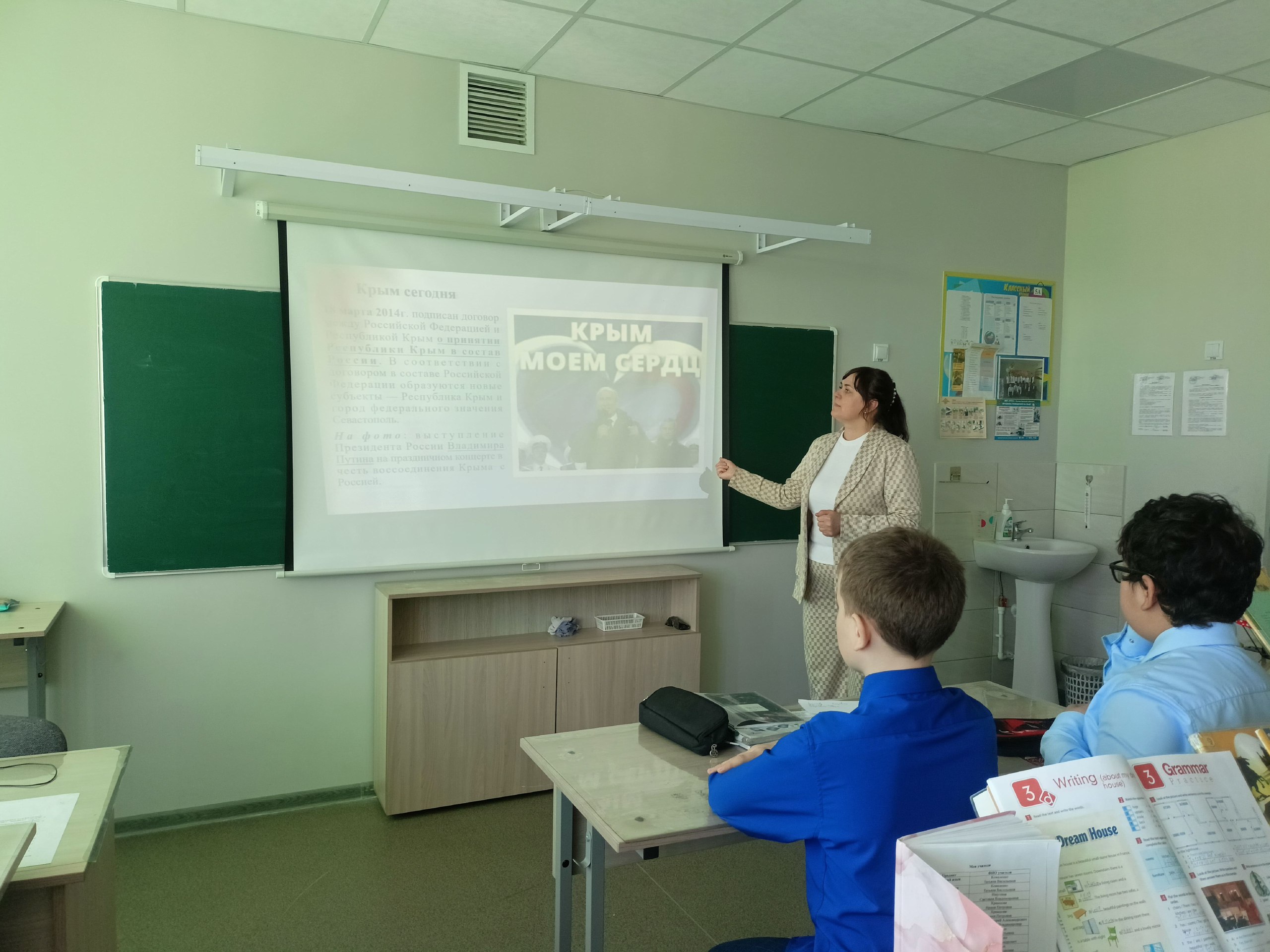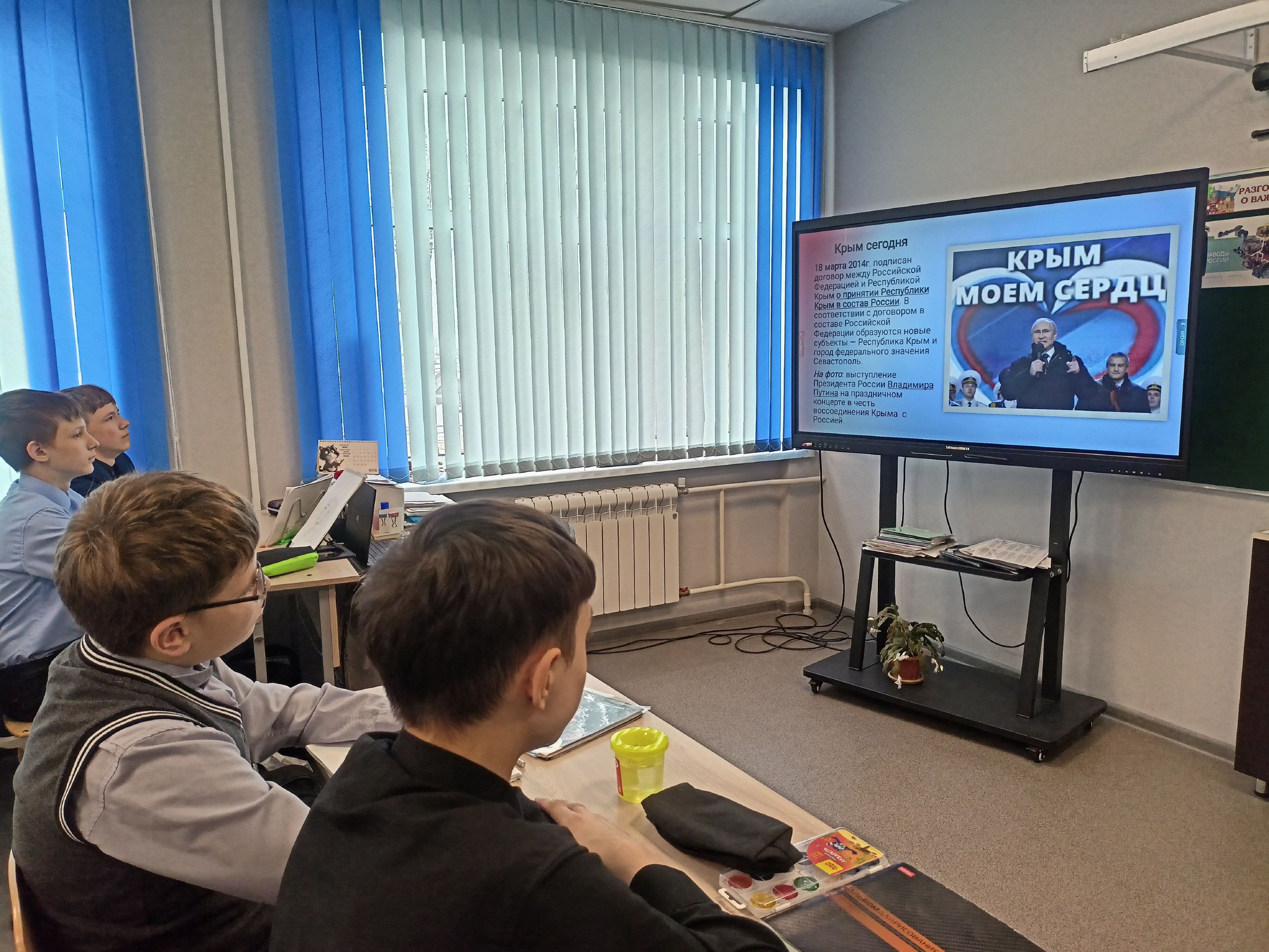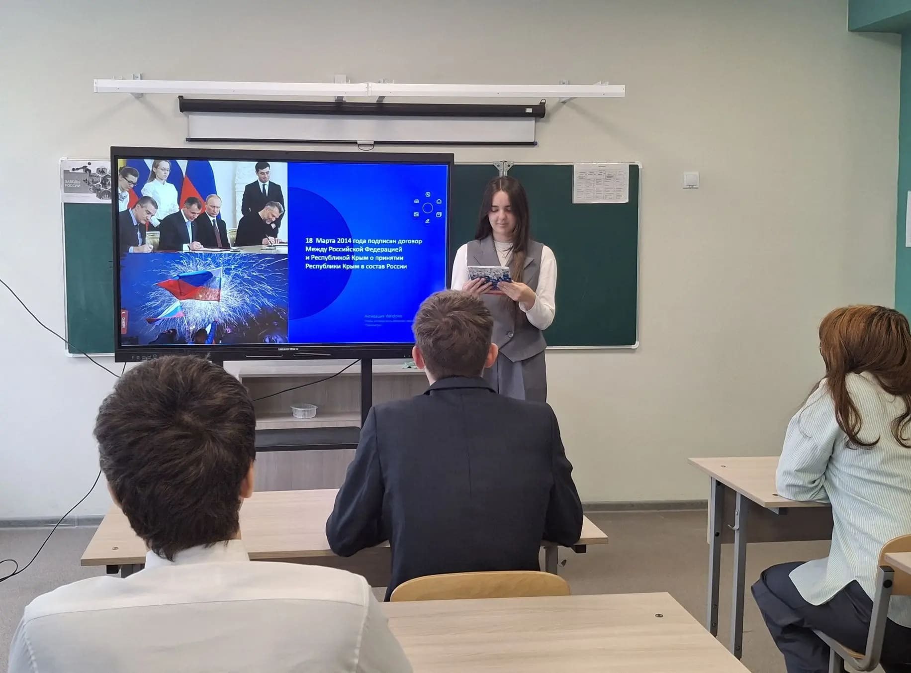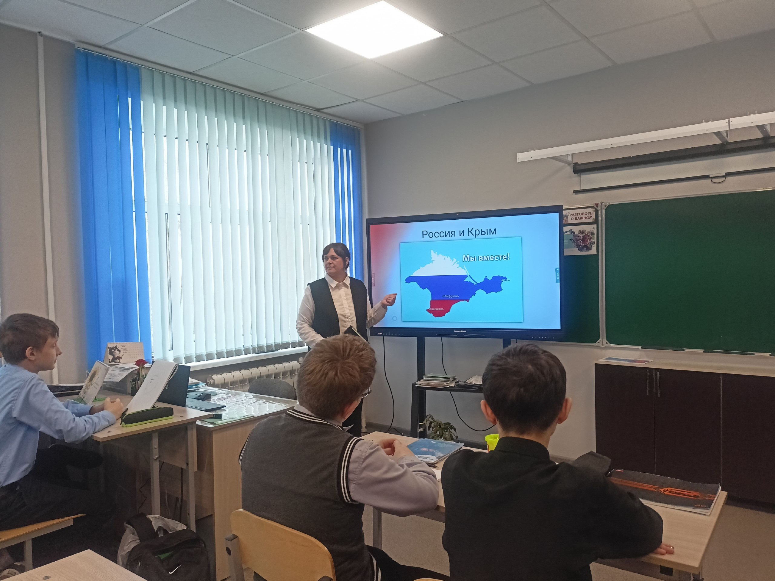 В Займищенской школе прошли мероприятия, посвященные этому историческому событию. Ученики участвовали в познавательных уроках, викторинах и виртуальных путешествиях по Крыму. Был оформлен информационный стенд.