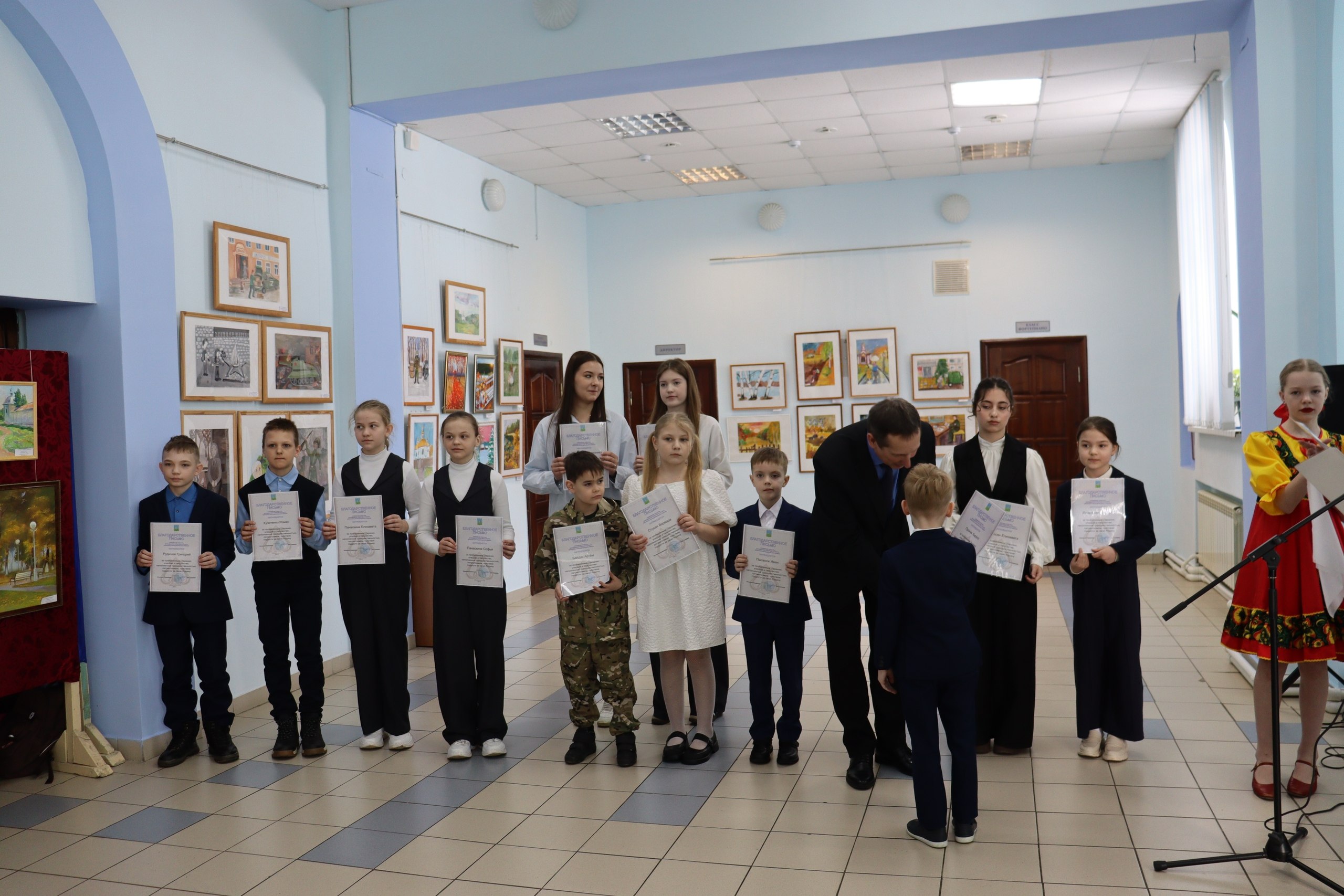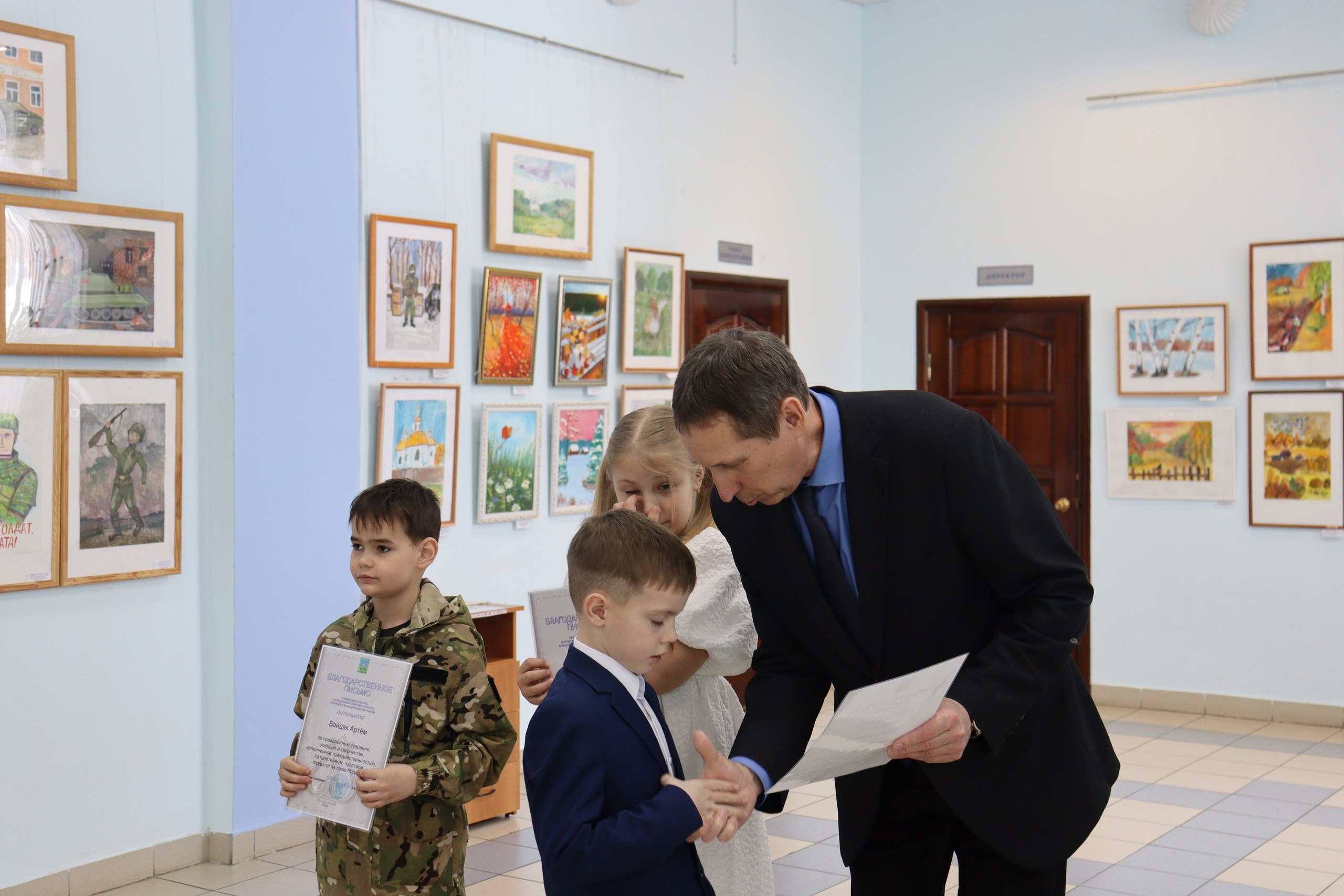 Все участники выставки получили благодарственные письма за вклад в развитие патриотического воспитания через искусство.