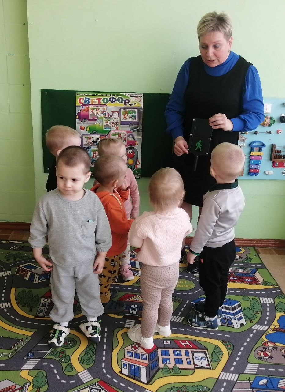 Воспитатель Зайцева О.М. с воспитанниками 1 младшей группы в доступной игровой форме рассказала о правилах дорожного движения. Ребята познакомились с умным светофором ,транспортом и узнали, о чем говорят дорожные знаки. «Дорожный транспорт», «Друг на дороге-Светофор». Малыши попробовали себя в роли водителей и пешеходов в играх «Внимательный водитель» и «Заводим мотор»; приняли участие в мало подвижной игре «Сигналы светофора». Воспитанники проявили талант в творчестве, «починив» автомобили в работе «Колеса для машины».