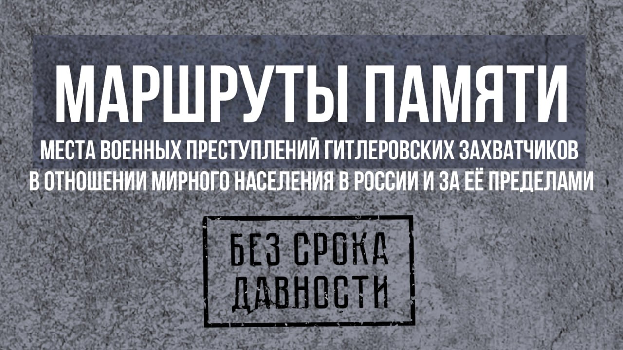 В рамках работы по сохранению памяти о жертвах нацистов и их пособников в годы Великой Отечественной войны — геноциде советского народа — на интернет-портале «Без срока давности» представлен проект «Маршруты памяти» по местам военных преступлений гитлеровских захватчиков на территории нашей страны и за её пределами.