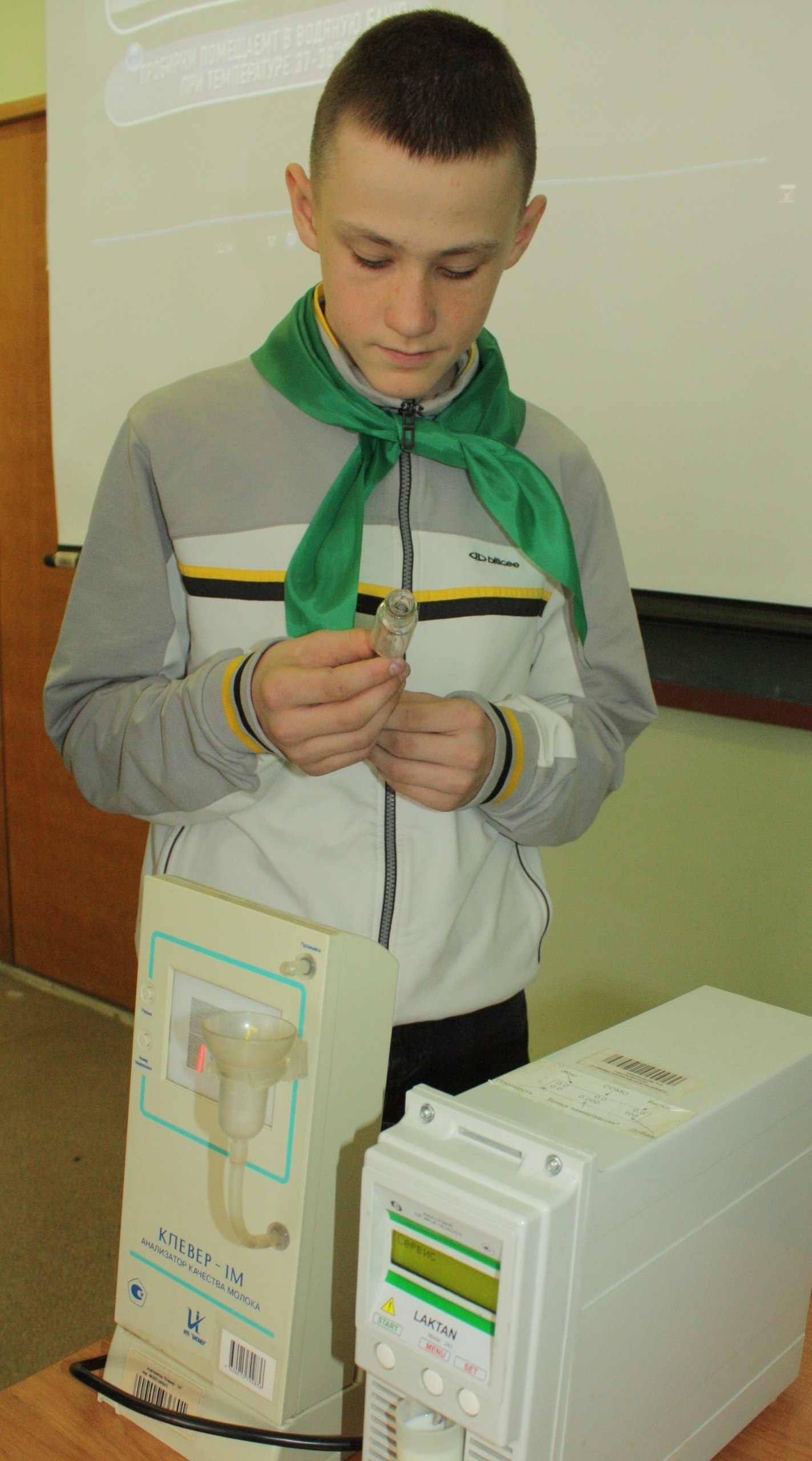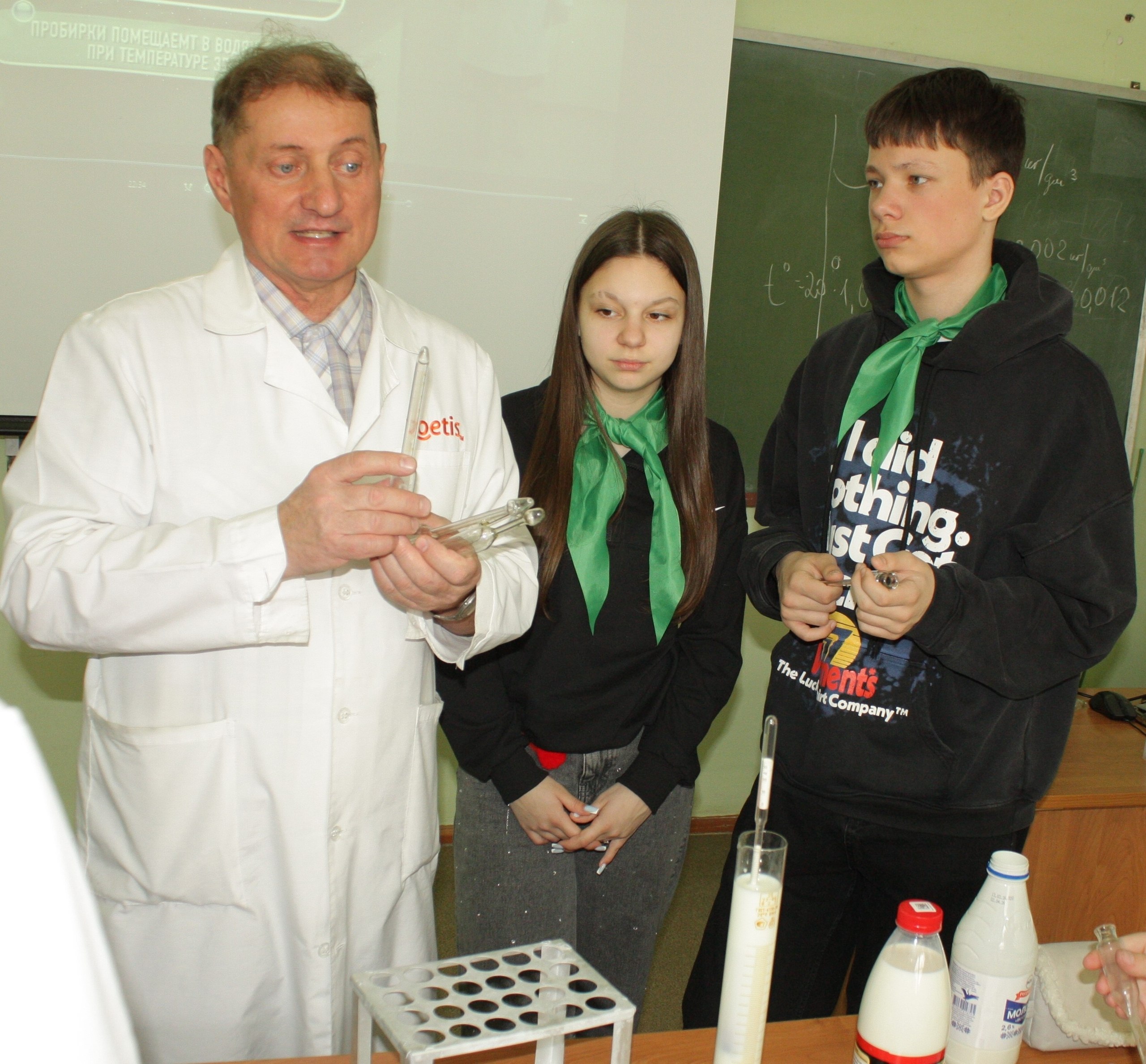 На занятии школьники почувствовали себя настоящими лаборантами . Они узнали, какие показатели определяют молоко: чистота, кислотность, плотность, содержание белка и жира, количество соматических клеток, и почему проверять нужно на всех этапах, от фермы до прилавка. Под руководством доцента С.И. Шепелева ребята освоили не только традиционные методы анализа, но и работу с современными приборами, такими как «Лактан 1-4М» и «Клевер 1-М».