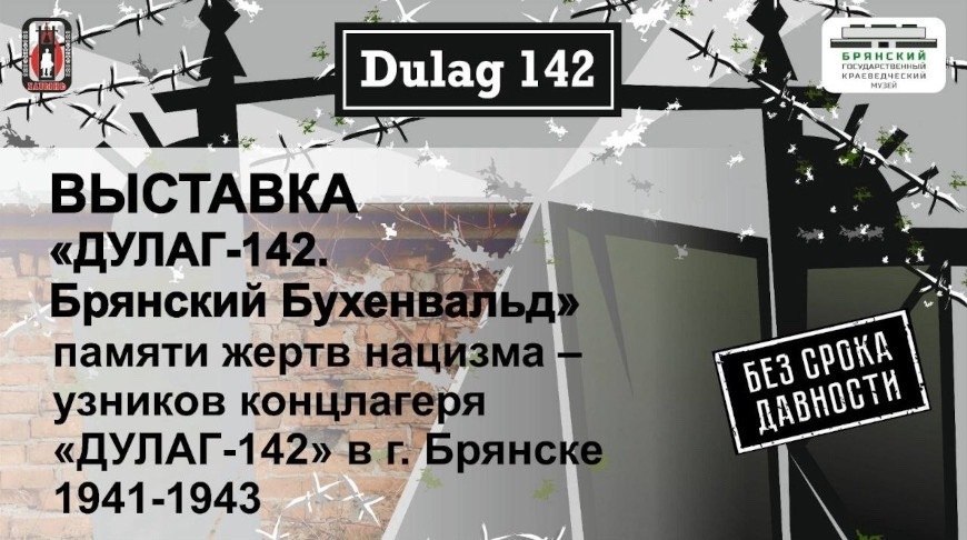 В рамках реализации соглашения о сотрудничестве между Брянским государственным краеведческим музеем и МК «Хатынь» 26 марта в павильоне «Люди добрые, помните!..» открылась выставка, из материалов которой можно узнать ужасающую историю одного из крупнейших в Брянской области мест принудительного содержания мирных граждан и советских военнопленных «Дулаг-142».