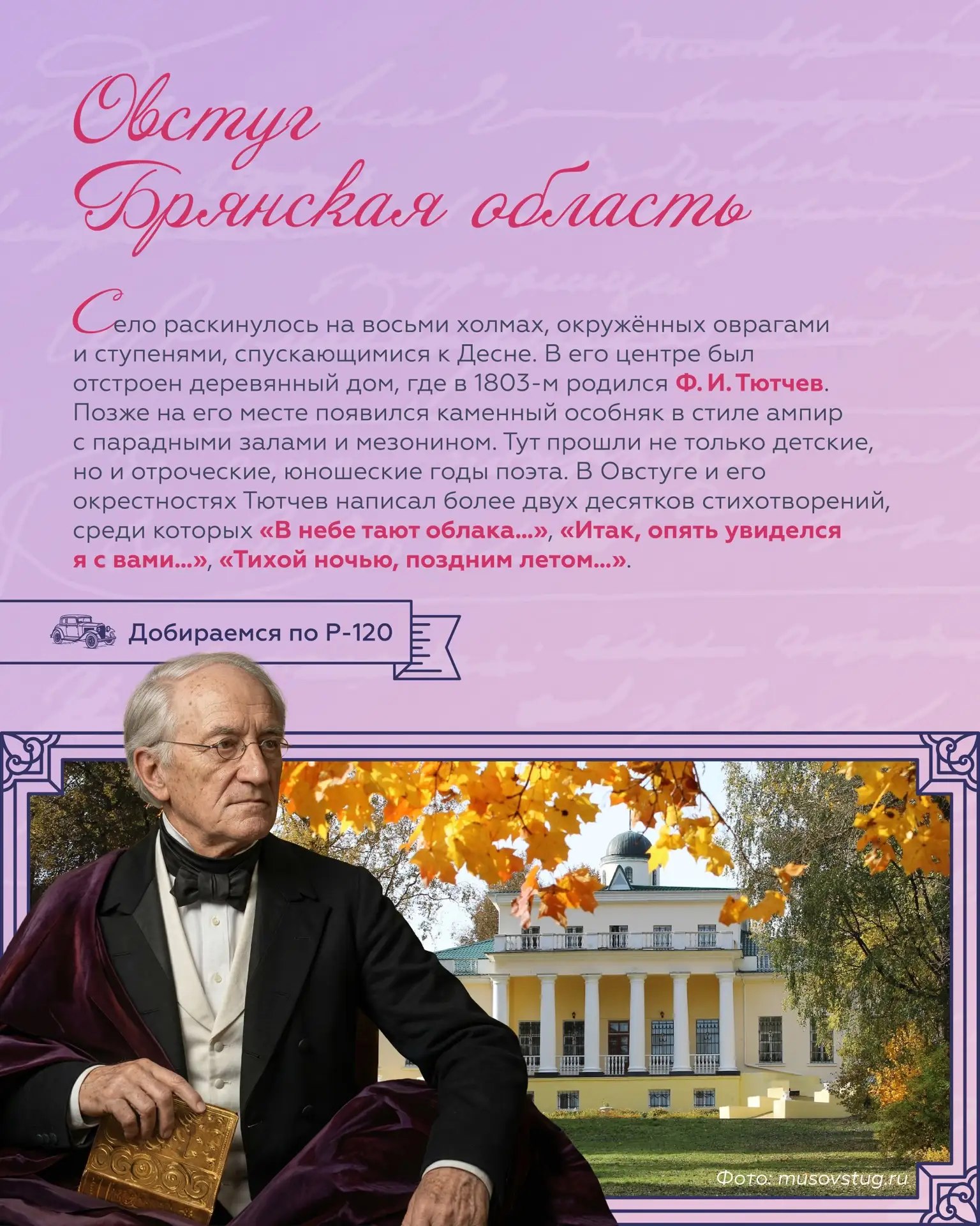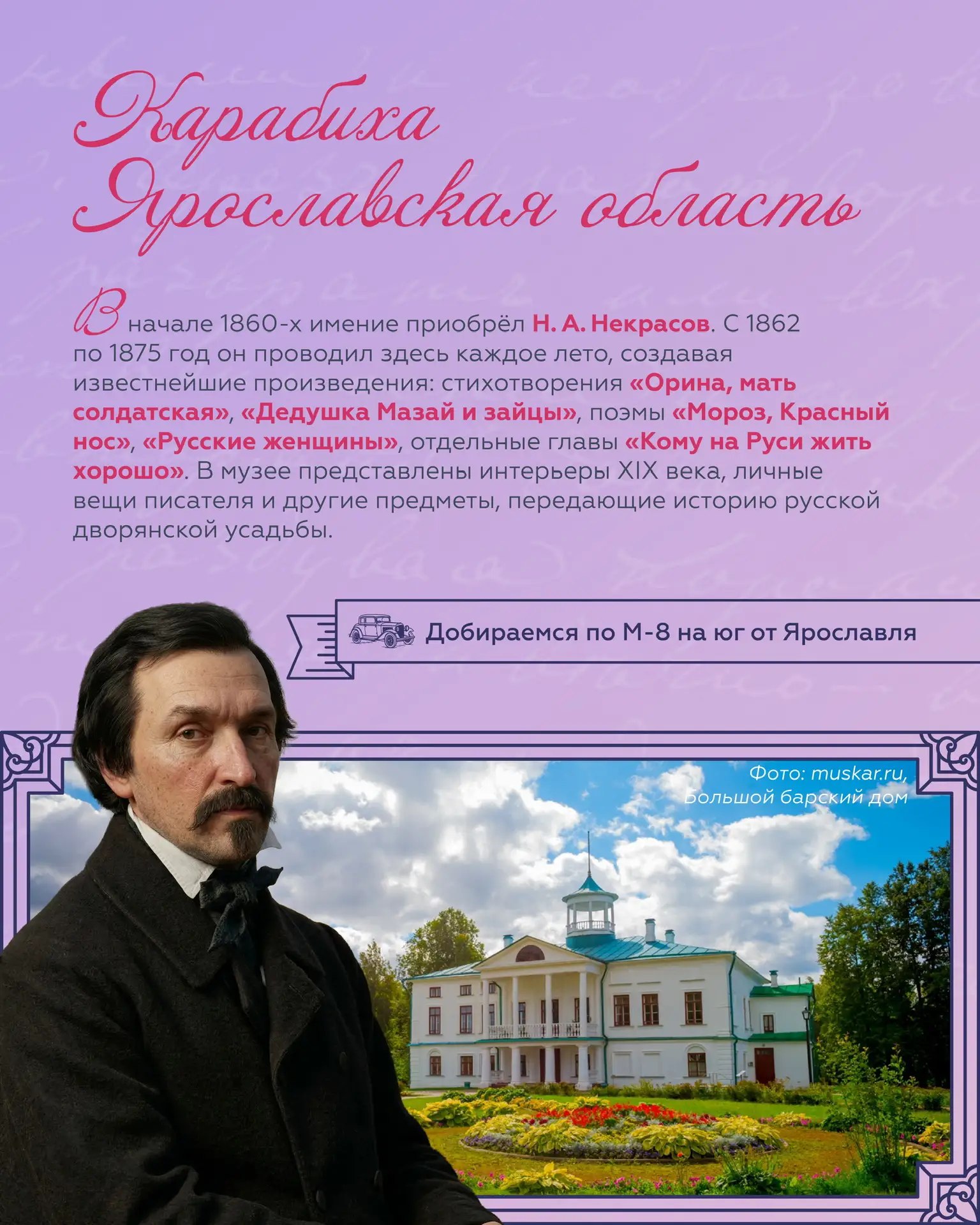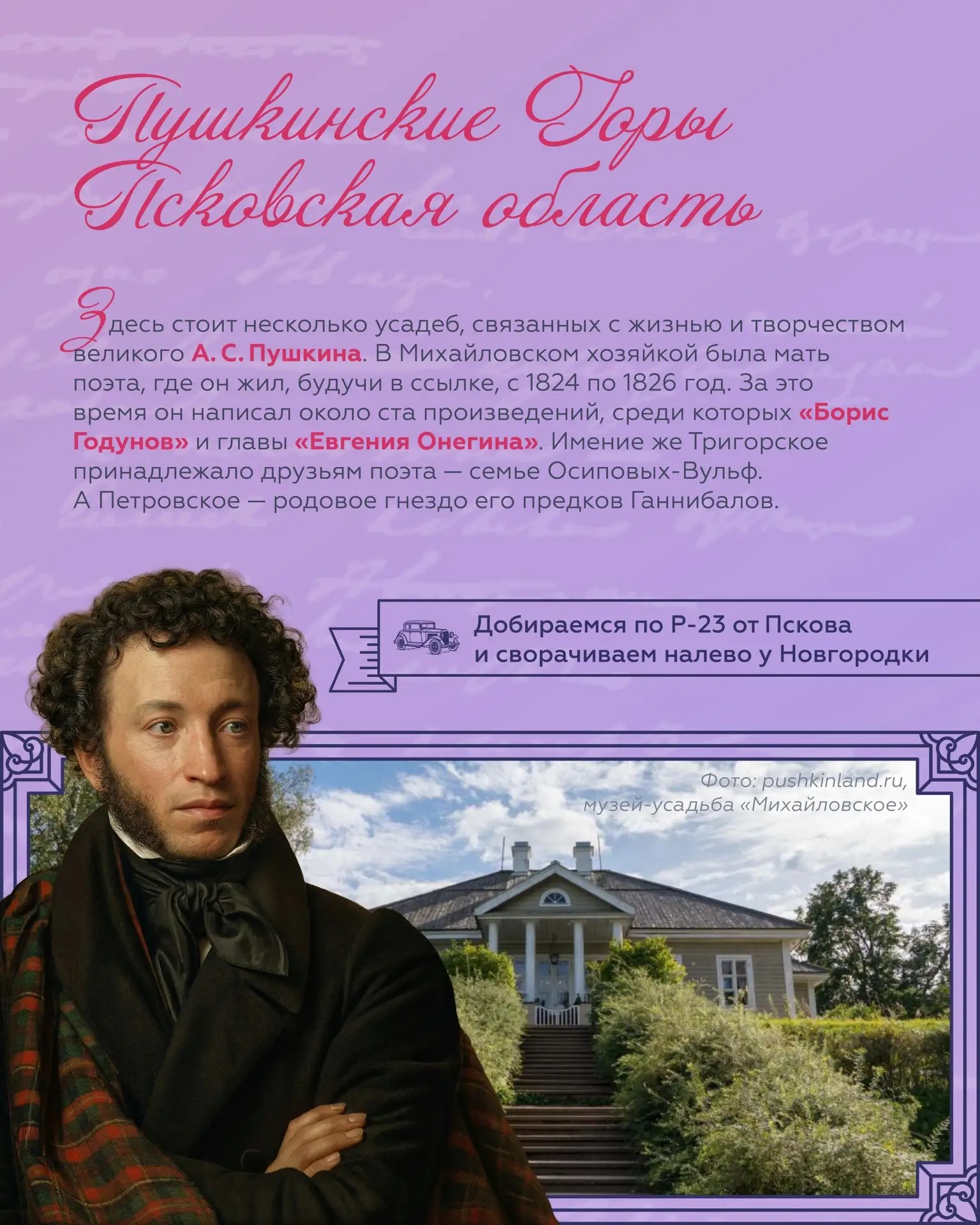 Подготовили для вас подборку локаций, где жили и работали Пушкин, Лермонтов, Некрасов и другие великие писатели. Добраться до них можно по федералкам, которые проходят совсем рядом или ведут прямо к этим точкам.