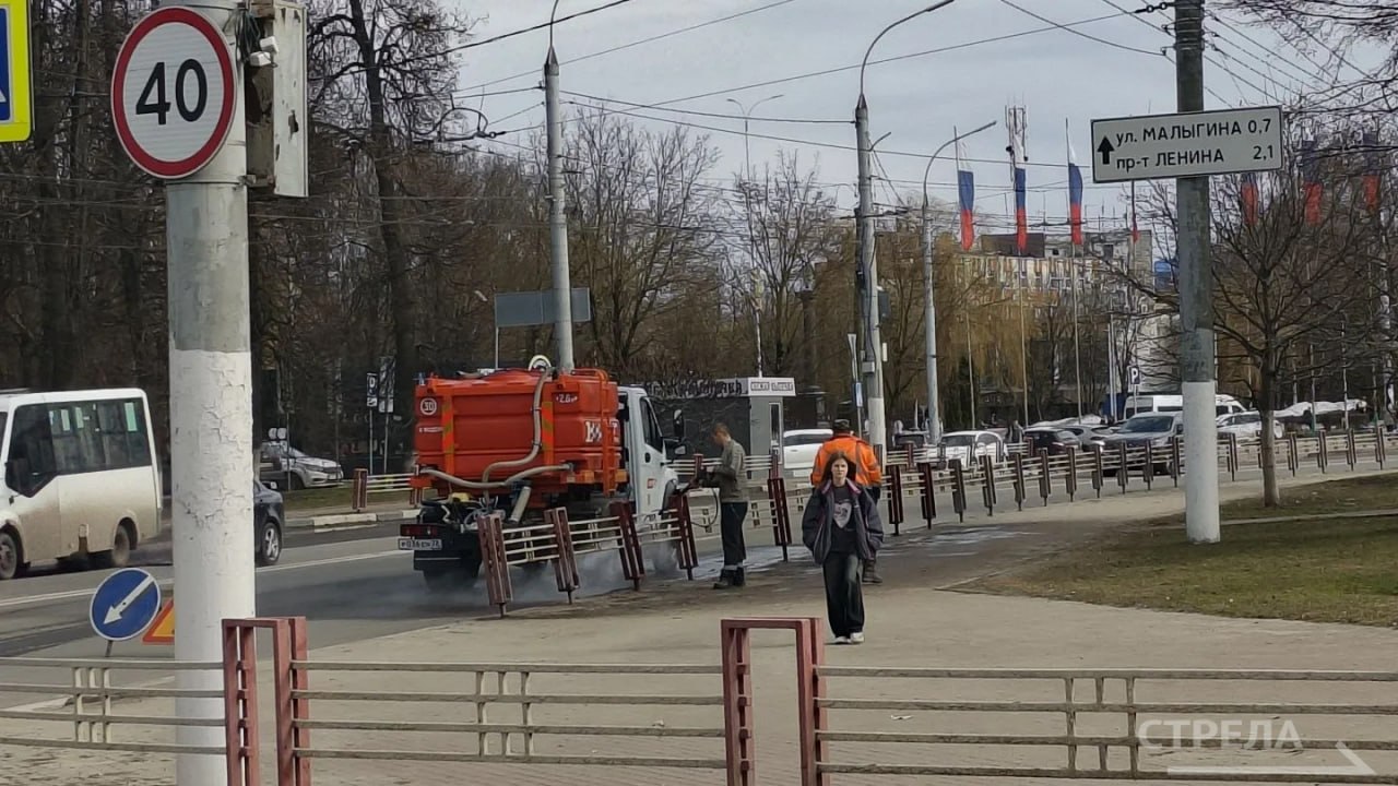 Сегодня, 30 марта, на улицах города было замечено сразу несколько спецмашин. Так, тротуары и проезжую часть мыли на улицах Красноармейской и Бежицкой в Советском районе, а также на проспекте Московском в Фокинском районе.