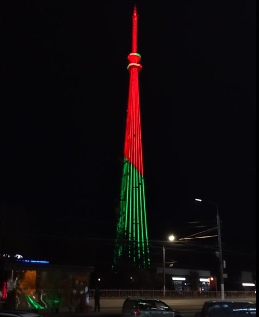 Праздничный сценарий подсветки будет работать утром с 05:00 до 06:00 и вечером с 20:00 до 23:00. Телебашня окрасится цветами российского и белорусского флагов. На медиафасаде башни появится бегущая строка с надписью «День единения народов Беларуси и России!».