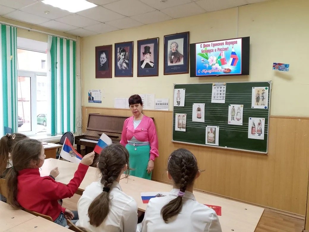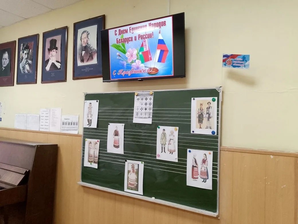 В этот день для учащихся музыкального отделения ДШИ им. Е.М.Беляева состоялось важное просветительское мероприятие – тематическая беседа "Россия -Белоруссия: мы единый народ", которую провела преподаватель музыкально-теоретических дисциплин Максименко В.Ф.