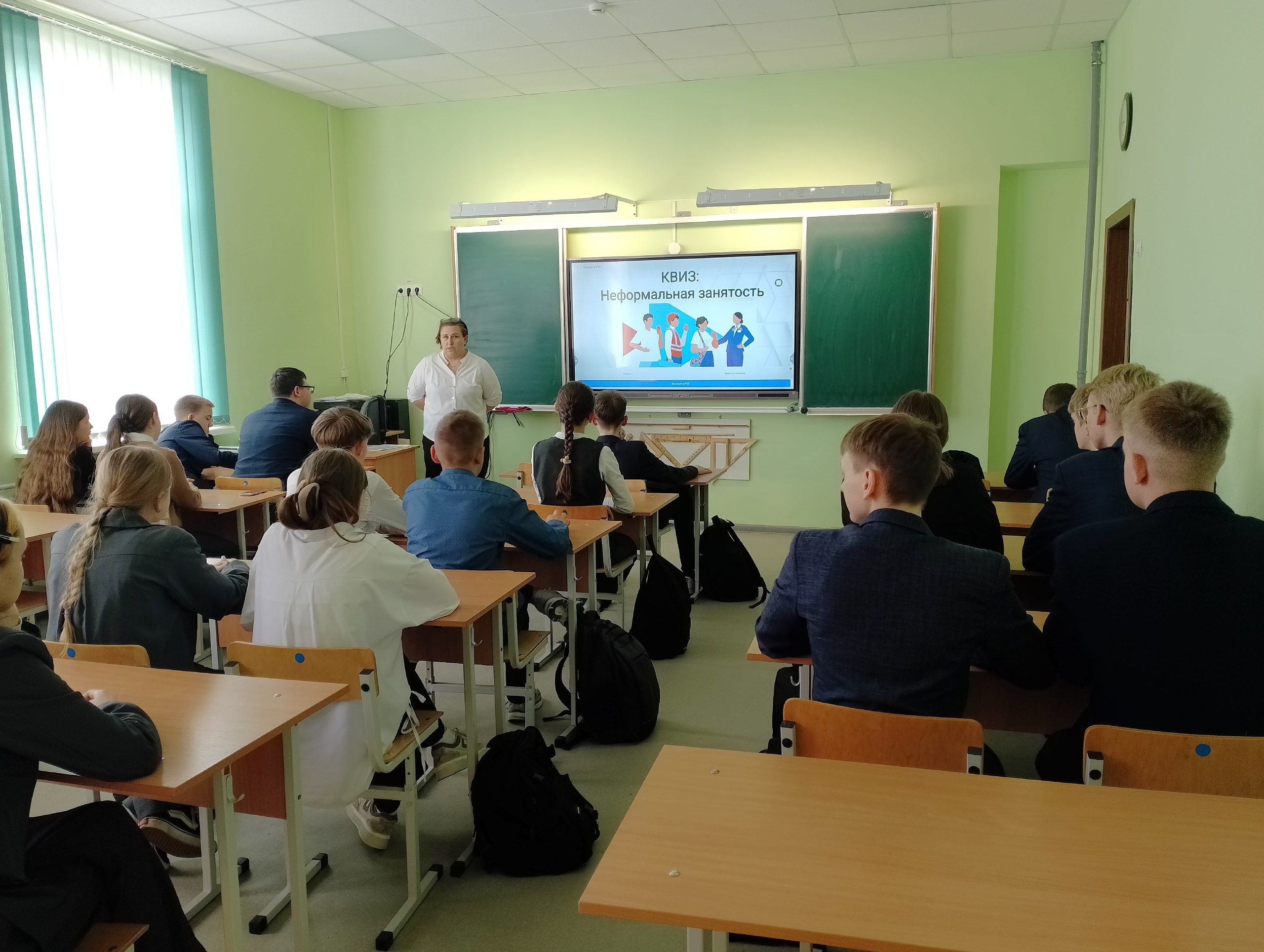 Ребята активно участвовали, отвечали на вопросы и делились мнениями. Главной задачей было сформировать у учащихся устойчивое негативное отношение к неформальной занятости, помочь осознать важность официального оформления и научить защищать свои права в сфере трудовых отношений.
