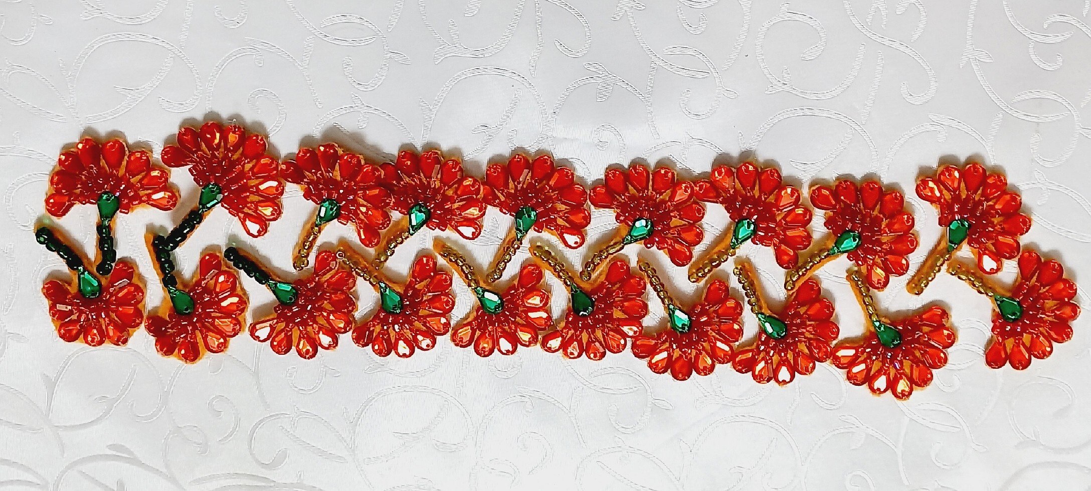 Татьяна Сарасек провела творческое занятие, на котором участницы создавали символичные броши. На фетре они вышивали стразами красные гвоздики, а стебельки оформляли бисером.