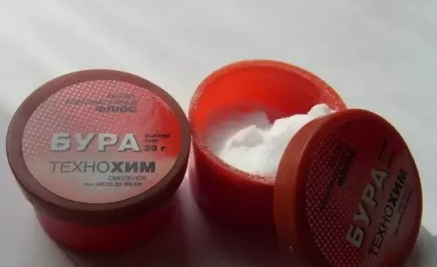 - Смешать по полстакана порошка и буры;