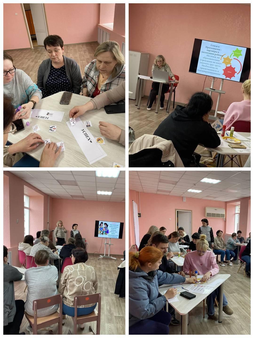 Заместитель директора по УВР Марковцева Татьяна Петровна предложила родителям творческое задание: составить свою формулу успеха. Родители поделились своим видением, из чего, по их мнению, складывается настоящее достижение ребёнка. Аналогичное задание выполнили и педагоги прогимназии.