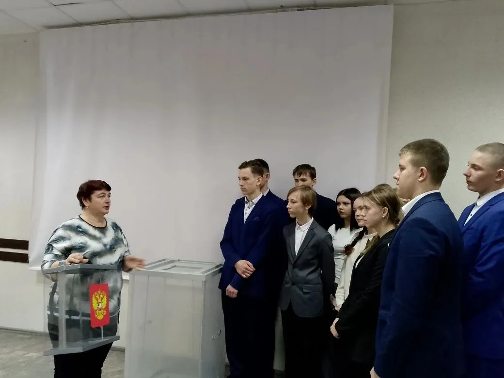 Ученики 10 класса имели возможность узнать о ходе выборной кампании, процедуре проведения на местах лично от членов участковых избирательных комиссий: Шевяковой Г. А. , Щербаковой С. С. и Храмченковой М. В.
