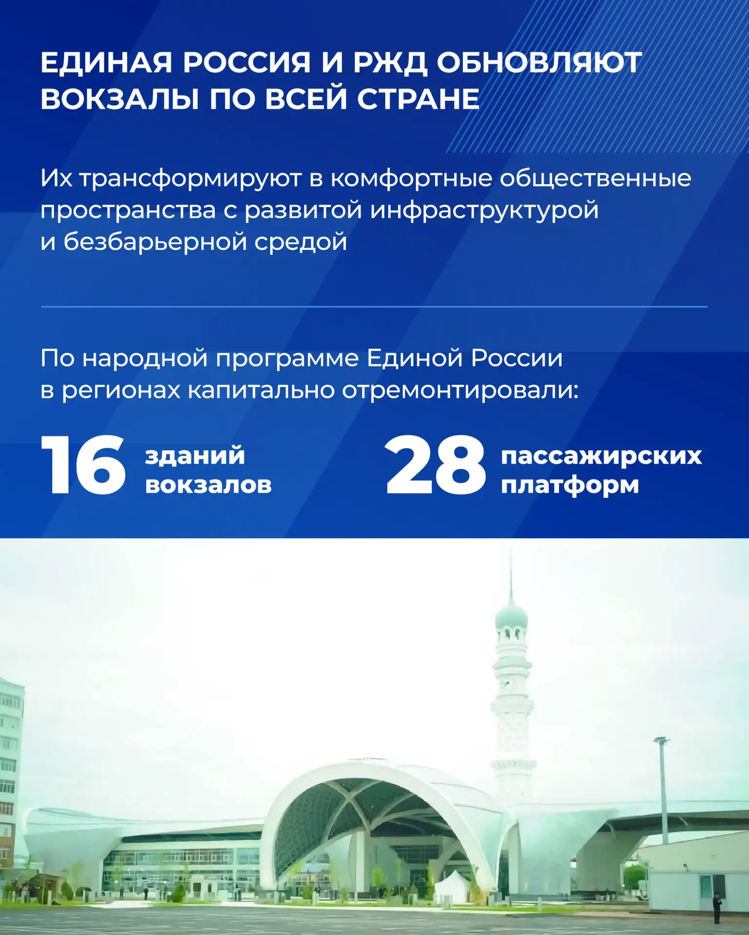 Единая Россия по народной программе партии вместе с РЖД работает над обновлением вокзалов по всей стране. Главное — сделать их удобными для пассажиров. Вокзалы превращаются в современные и комфортные общественные пространства.