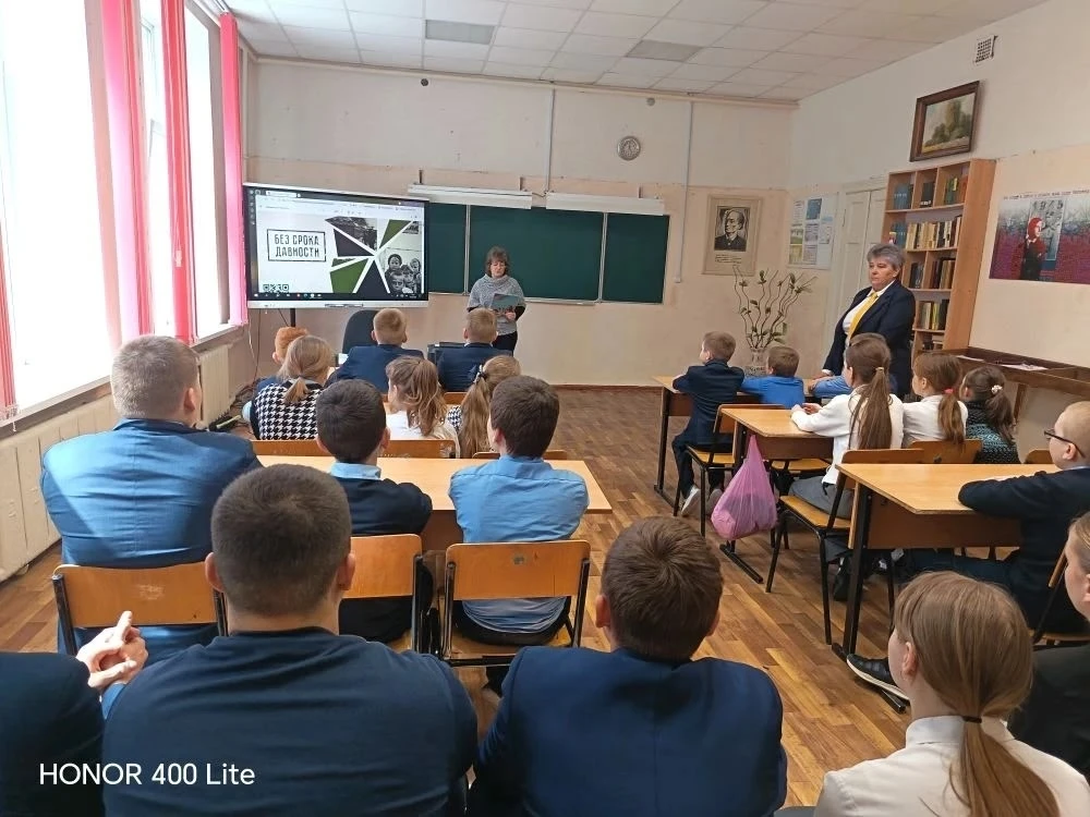 •Кинопоказ фильма на тему памятной даты и тематическая беседа по готовым материалам «Сроку давности не подлежит».