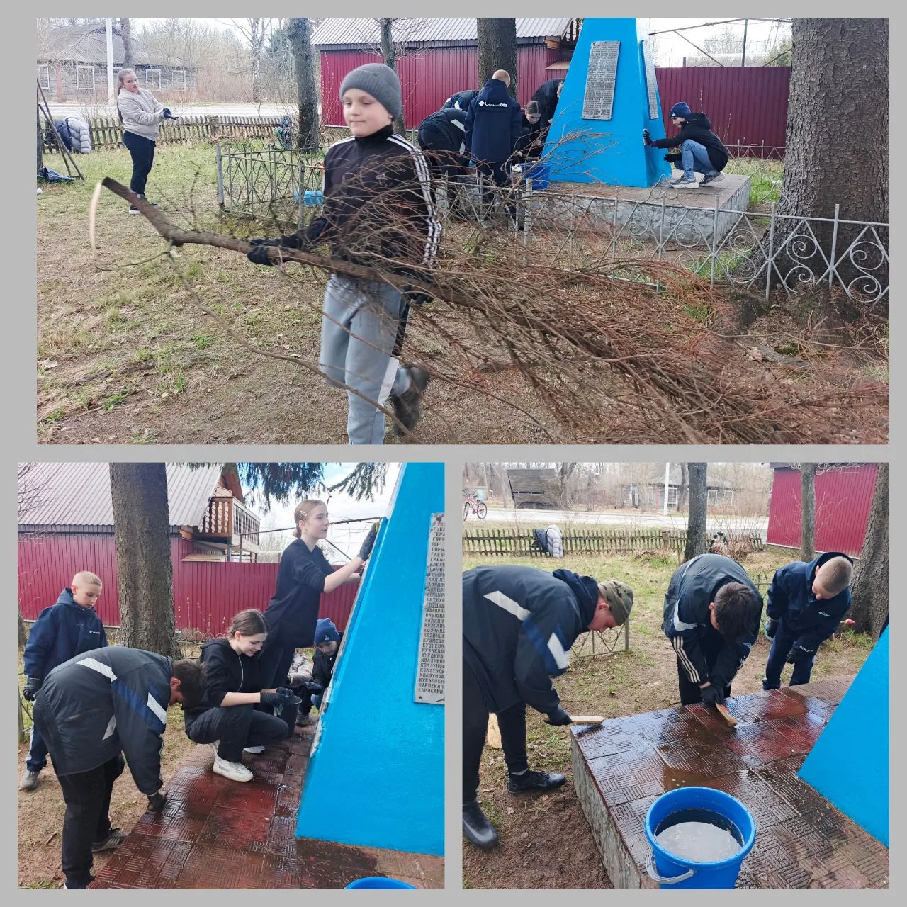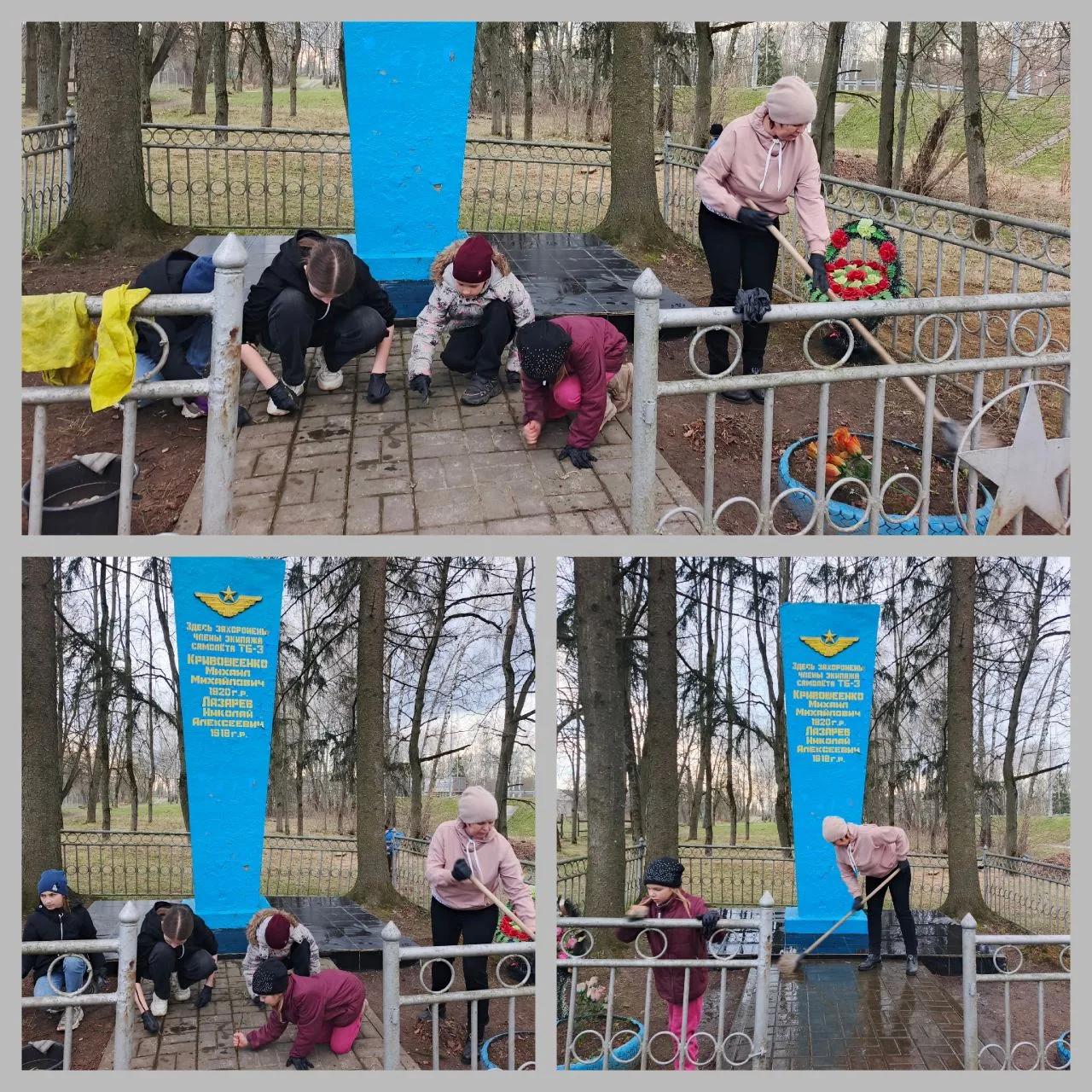 Сегодня участники Движения Первых Хмелевской школы совместно с советником директора по воспитанию Кушнерёвой Н. В. провели важную и трогательную акцию — уборку территорию памятника, погибшим односельчанам, в годы Великой Отечественной войны и памятника, погибшим лётчикам.