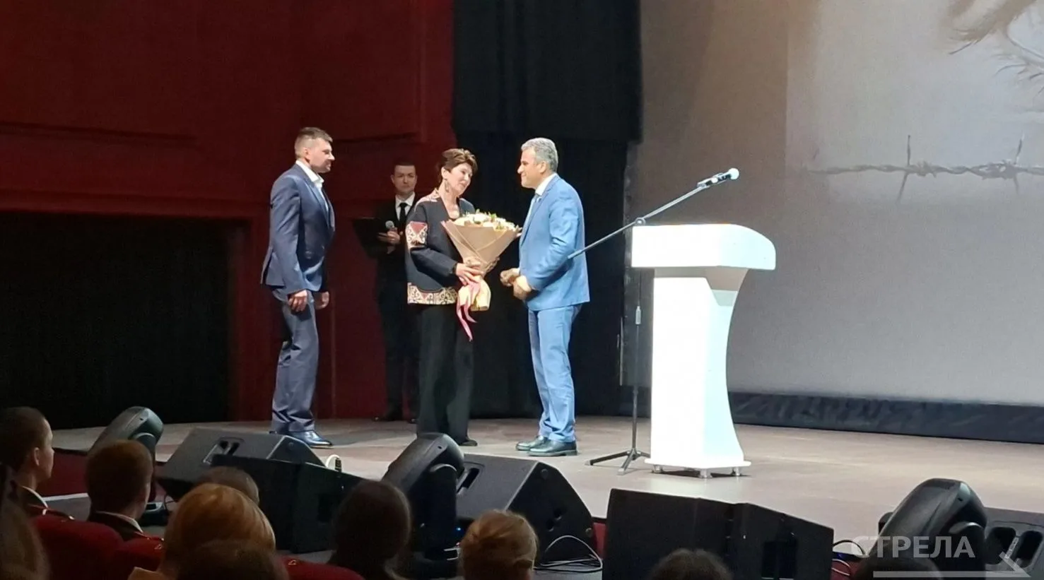 Присутствовавшим на кинопоказе бывшим малолетним узникам фашистских концлагарей в ходе мероприятия воспитанники кадетских школ вручили букеты цветов.