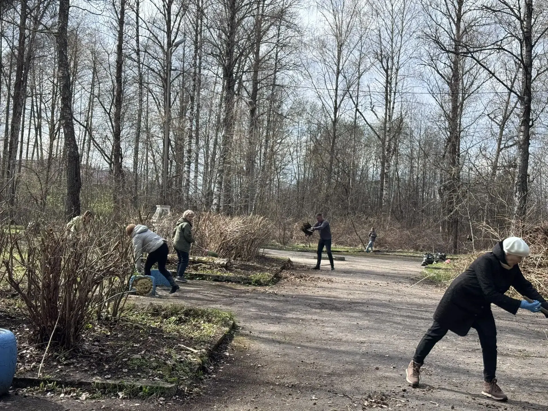 В посёлке Белые Берга сотрудники администрации, работники организаций и предприятий района навели порядок в парке у озера.