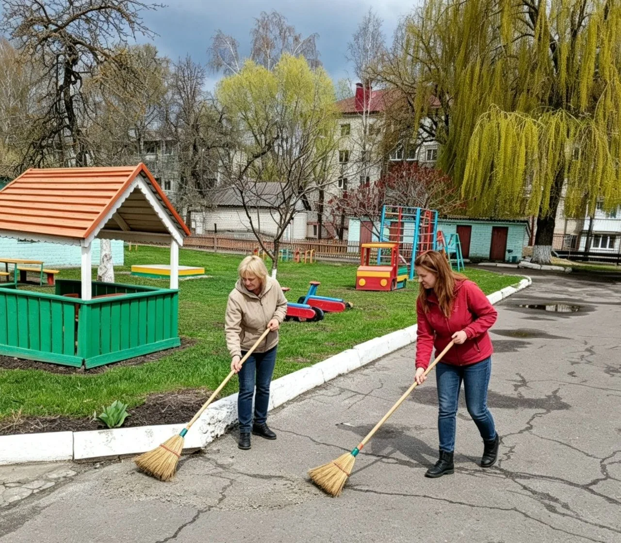 Педагоги, воспитатели, школьники и студенты тоже вышли сегодня на уборку. Подмести подведомственные территории, вынести прошлогоднюю листву с участков, посадить новые цветы, побелить бордюры, покрасить заборы, ограждения и детское оборудование не прогулочных площадках. Всё для того, чтобы образовательный процесс проходил в чистоте и порядке.