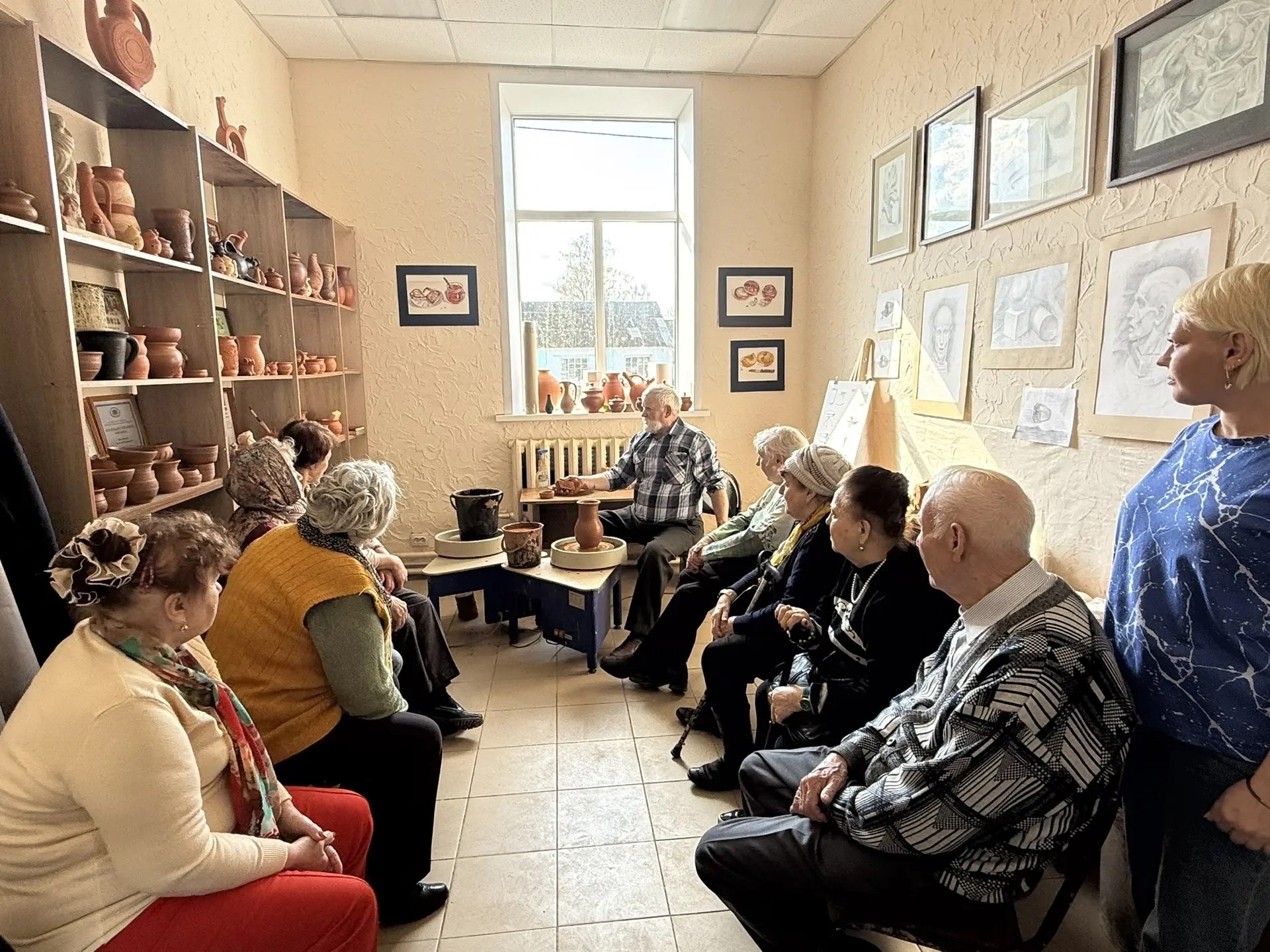 Наши уважаемые пенсионеры стали гостями гончарной мастерской известного местного ремесленника Василия Ивановича Шклярова. Возможность прикоснуться к древнему виду искусства, освоить азы гончарного мастерства под руководством опытного наставника вызвала живой интерес у всех собравшихся.