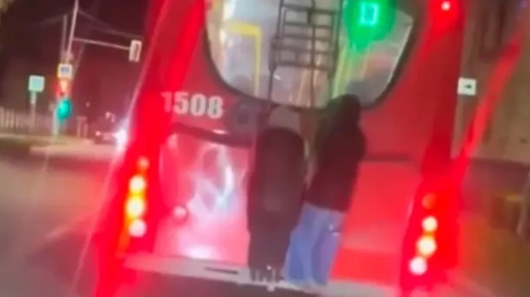 На кадрах, которые быстро разлетелись по интернету, двое детей выбрали опасный способ передвижения, зацепившись за лестницу кузова троллейбуса.