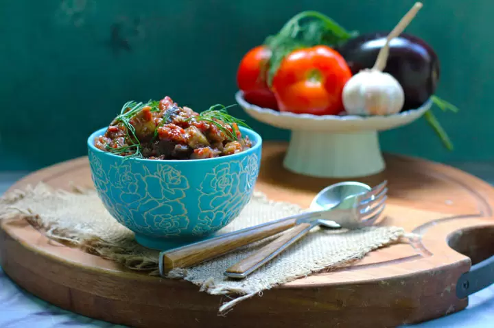 Подавайте баклажаны, щедро украсив их свежей зеленью. Это не только улучшит внешний вид, но и добавит свежих нот в блюдо. Блюдо прекрасно сочетается как в горячем, так и в холодном виде, что делает его универсальным и идеальным для любой обстановки.