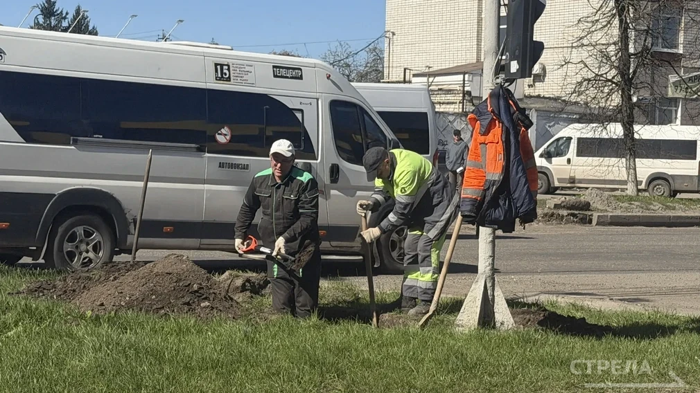 В настоящее время в районе остановки «Таксопарк» рабочие выкапывают ямы, куда будут установлены столбы с освещением.