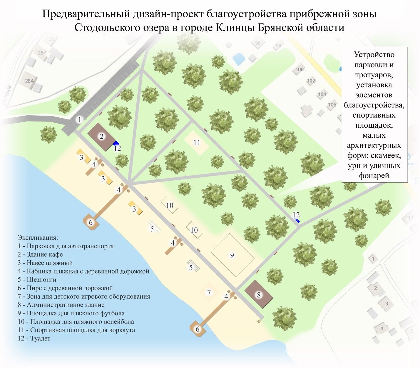 - Прибрежная зона Стодольского озера в городе Клинцы Брянской области.