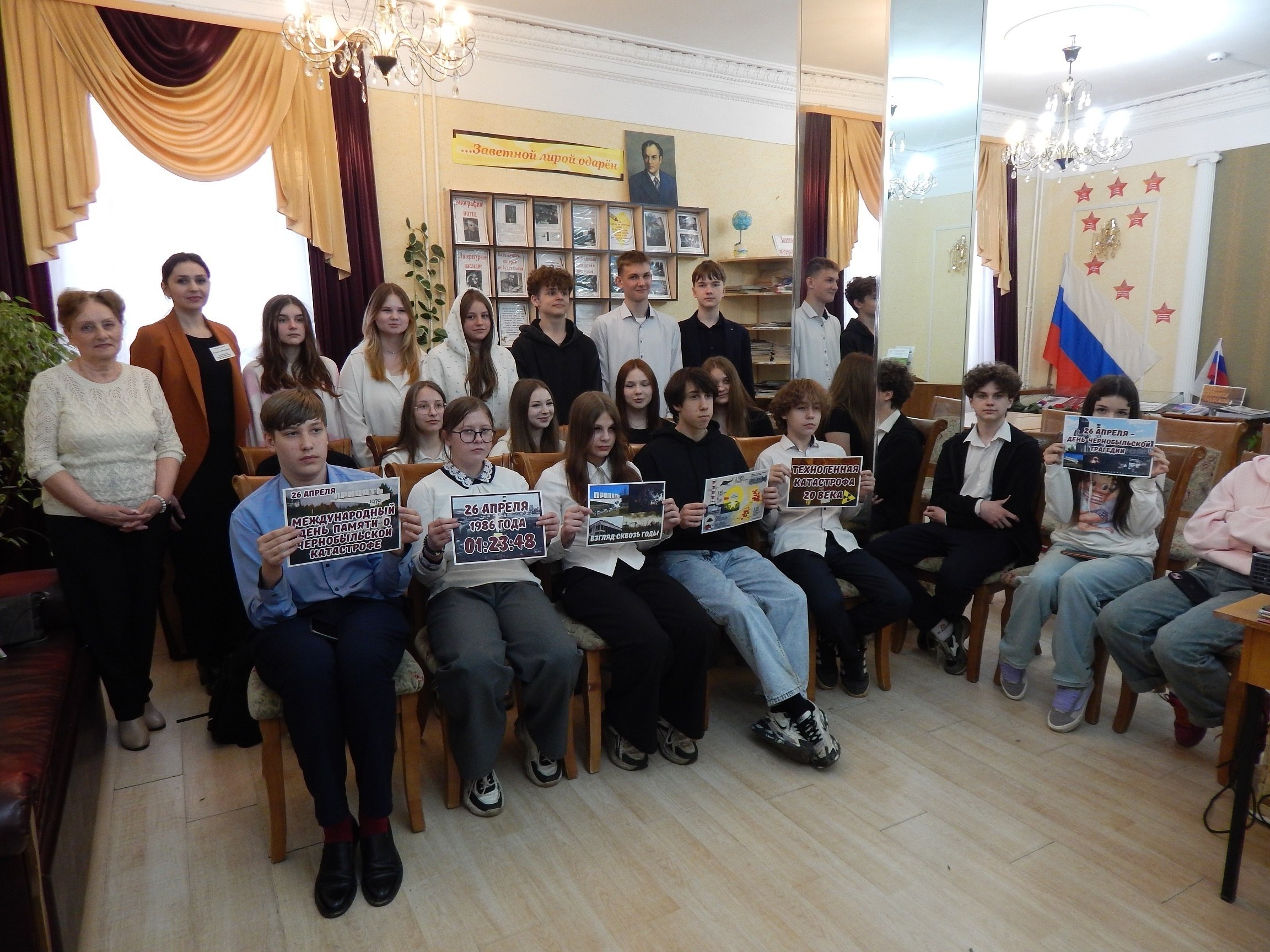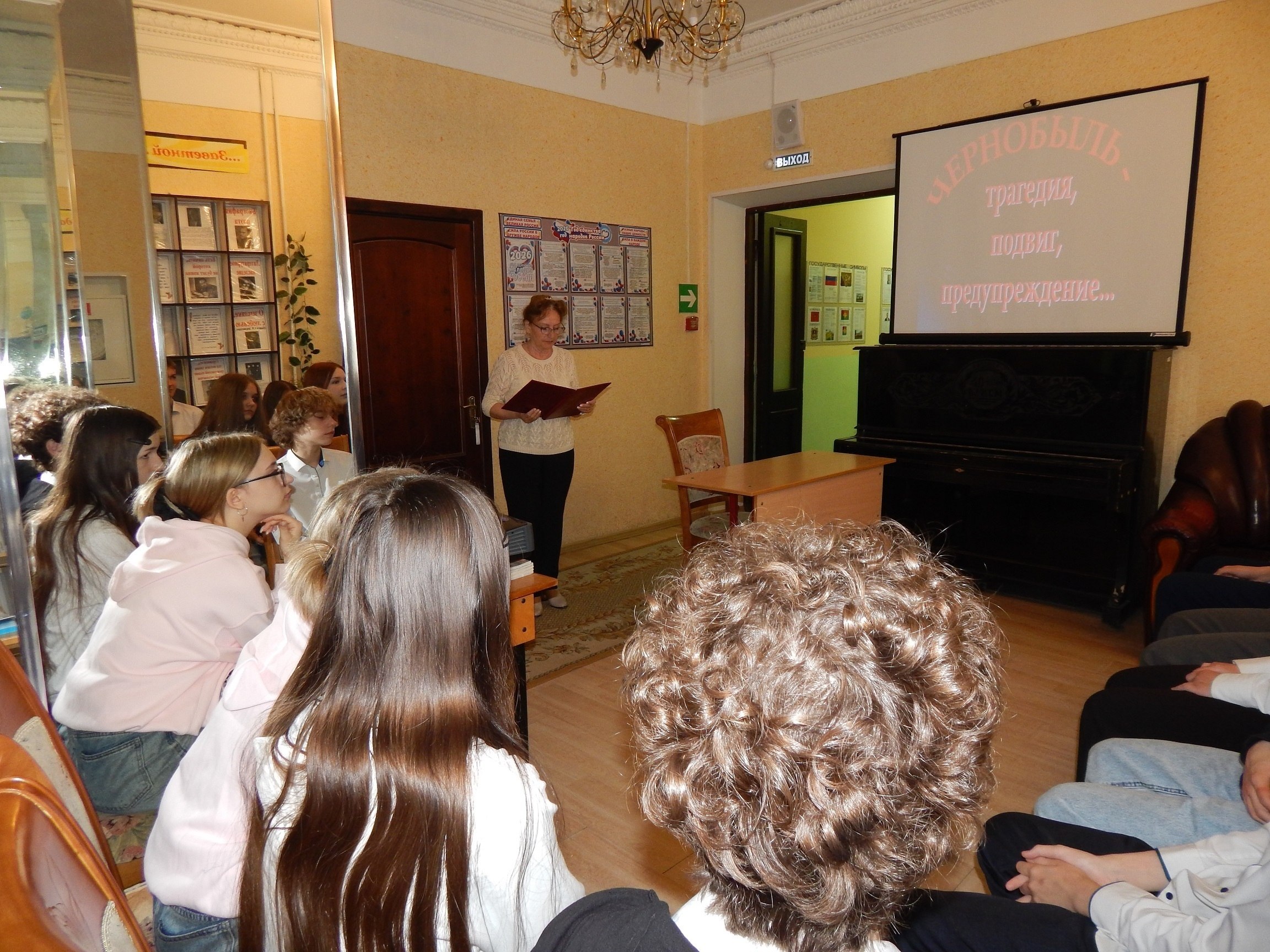 23 апреля в рамках программы культурного просвещения людей «Пушкинская карта» для учащихся 8 класса СОШ №7 им. А.С. Семенка заведующей информационно-правовым отделом краеведческой библиотеки им. А.Ф. Землянского проведён информационный час «Боль нашей памяти». Вспоминая о Чернобыле, мы отдаём дань уважения тем, кто ценой своей жизни и здоровья боролся с последствиями аварии. Ликвидаторы, пожарные, работники станции – их подвиг навсегда останется в наших сердцах. Мы помним и о тысячах людей, чьи жизни были навсегда изменены этой катастрофой, о тех, кто был вынужден покинуть свои дома, о тех, кто до сих пор страдает от последствий радиационного облучения.