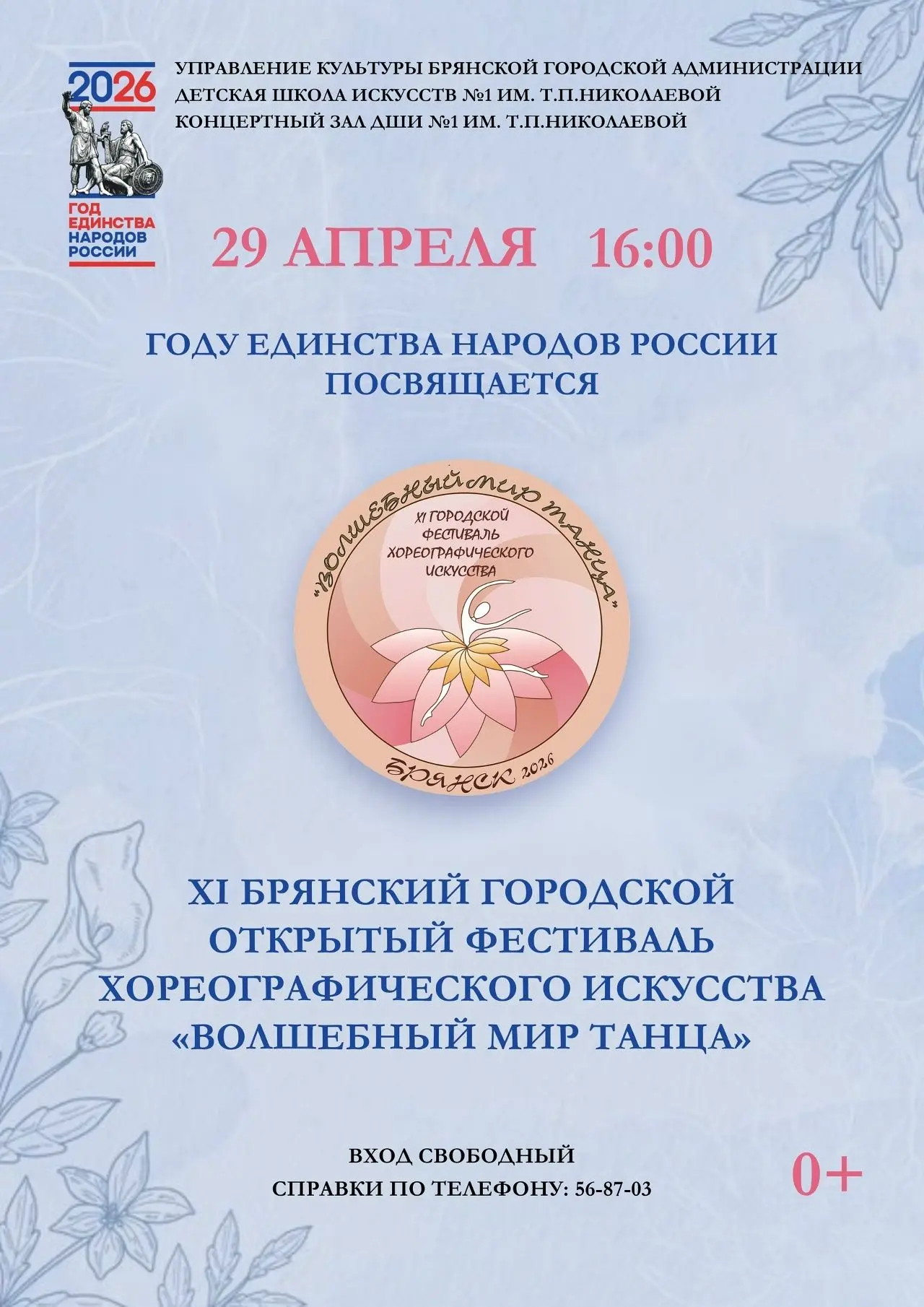 В Брянске 29 апреля состоится городской открытый фестиваль хореографического искусства «Волшебный мир танца». Событие, посвященное Году единства народов России, объединит лучшие танцевальные коллективы областного центра.