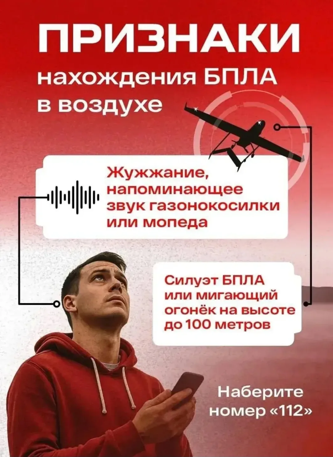 БЕСПИЛОТНАЯ ОПАСНОСТЬ! На территории БРЯНСКОЙ ОБЛАСТИ 25.04.2026! По возможности оставайтесь дома! Укройтесь в помещении без окон с капитальными стенами! Не подходите к окнам! Если вы находитесь на улице или в автотранспорте, направляйтесь в ближайшее...